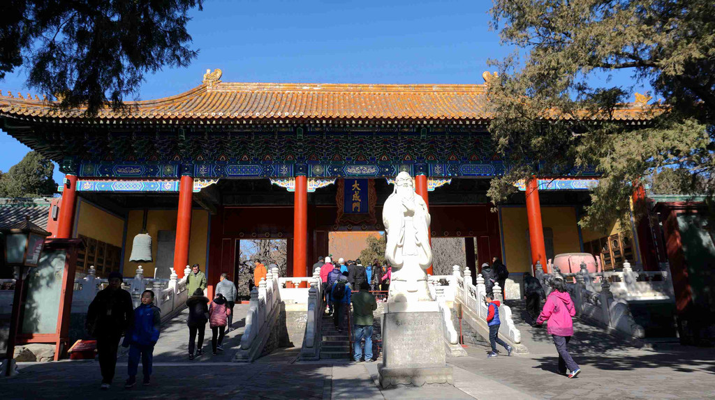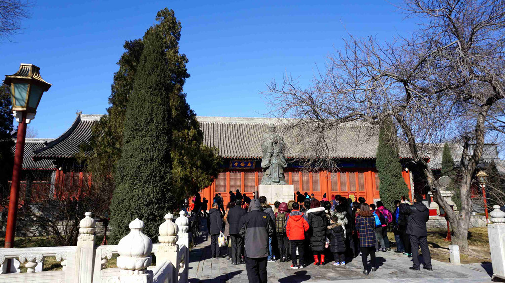 孔庙毗邻国子监,孔子是中国古代著名的大思想家、教育家,被誉为圣人。