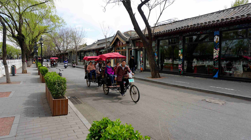 北京坐三轮车游胡同最集中的地区在什刹海地区,那里达官贵人的四合院较多,有胡同,有水面。