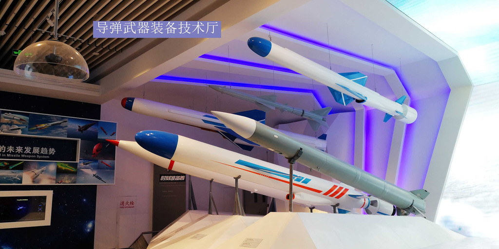 兵器陈列分为三个展区,第一个展区是一层中央大厅陈列的飞机、导弹和舰艇等,地面上、半空中都摆放有各类飞机。