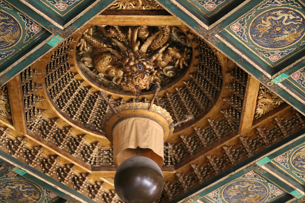 三大殿的西侧就是慈宁宫、永寿宫、长春宫、储秀宫等等小主娘娘们的居所,天花藻井雕刻得非常精美。