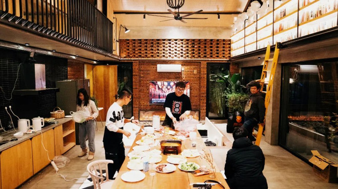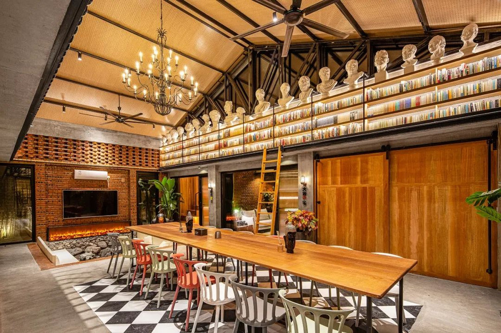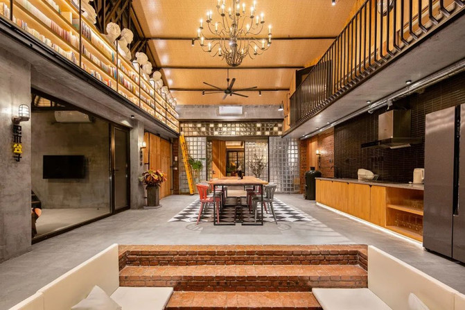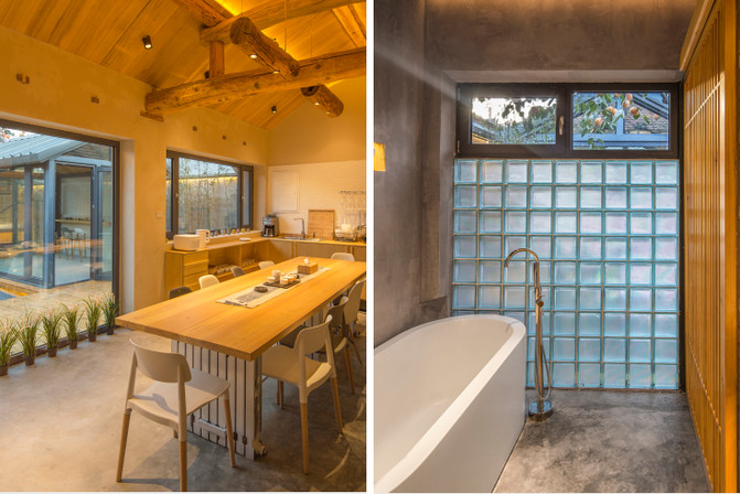 厂仓·微墅,后院驿站最豪华组合,超大的欧式客厅,可以容纳25人以内用餐以及会议。总计9个独立客房,并且配有五个厨房,想组织一场别有味道的厨艺大赛,都未尝不可。且配有三个私汤,一个浴缸以及一个日式泡桶。
