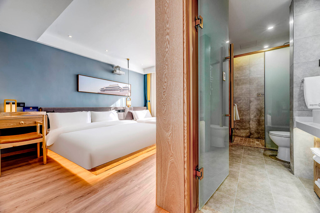 选择这里最重要的考虑就是位置,无论是即将开放的环球影城,还是去周边景点,以映向城酒店为圆心,开车30分钟内即可快速抵达,可谓通州过夜游首选。酒店于2021年崭新亮相,设施新,干净卫生。位置靠近通州万达广场,吃饭购物都很方便。酒店过夜住客享专属免费停车位。前台员工十分友好,房型方面,除标准房型外,还有家庭房、家庭套房,方便三口、四口之家同时入住,性价比高!