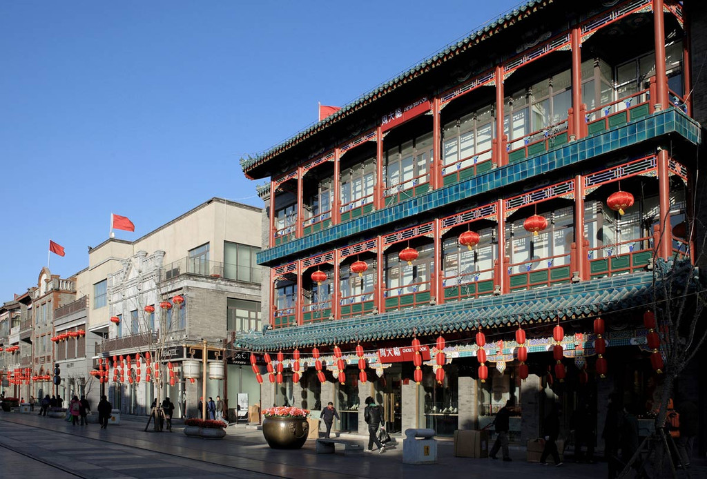 前门大街悠久的历史,造就了这里的许多中华老字号,如六必居酱园、同仁堂药店、瑞蚨祥绸布店、长春堂药店、内联升鞋店、张一元茶庄,还有月盛斋的酱肉店、都一处的烧卖店等16处老字号分列道路两侧。
