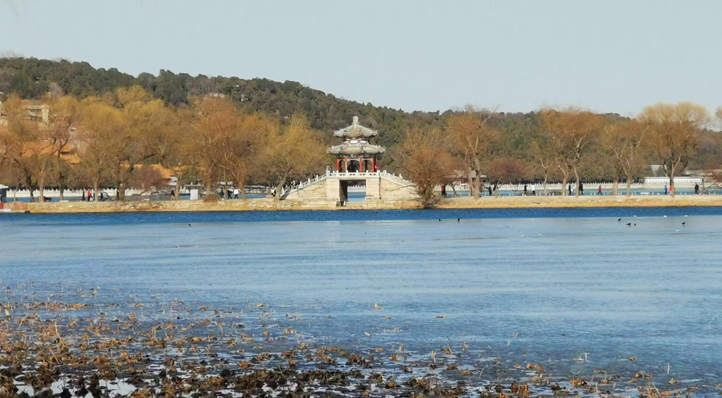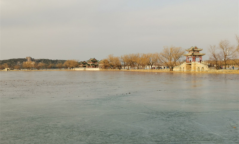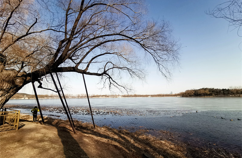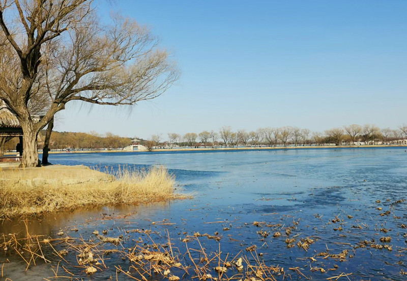 天气慢慢回暖,颐和园冰冻的湖面也陆续开始融化,但今天还是很凉,冷风嗖嗖,手露出一小会儿就冻僵了,北京今年的开春有些冷。