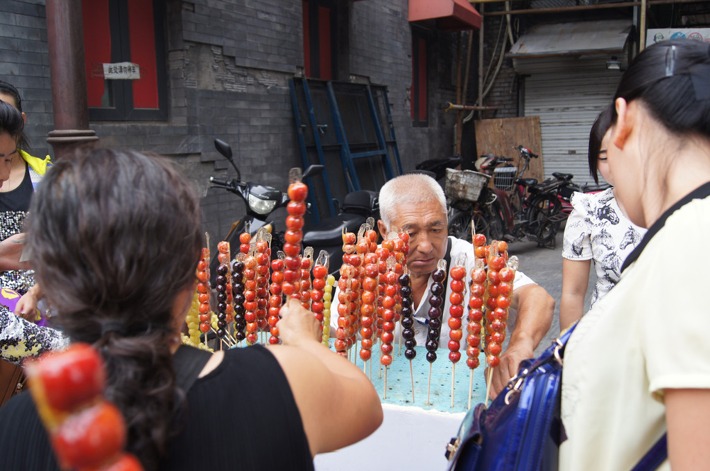 小巷胡同里的卖糖葫芦大爷,一口地道北京话叫卖,很让人有带入感,糖葫芦也好吃哦