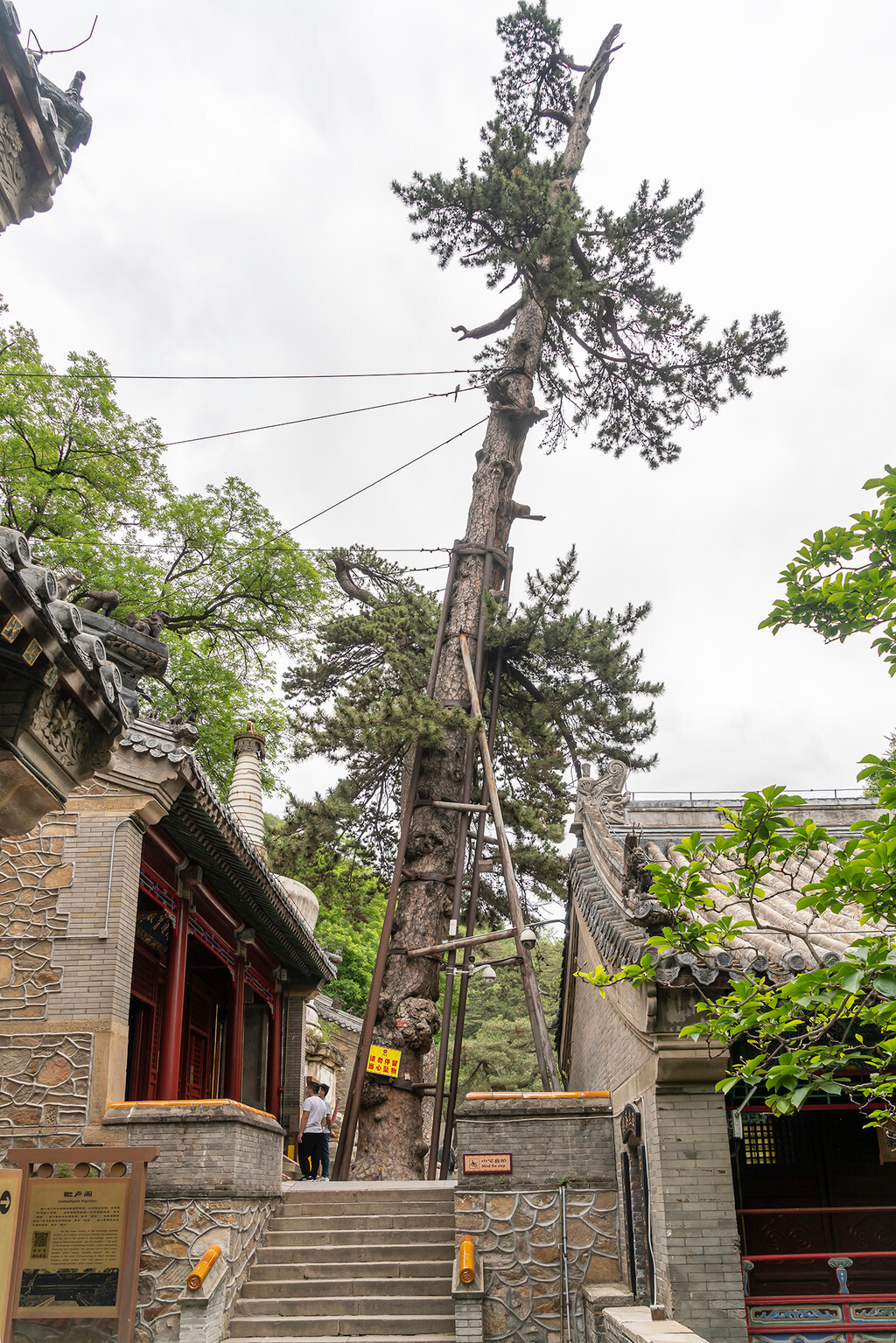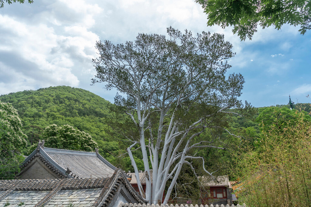 过去的僧人住在寺里,现在的僧人住在寺外,僧院里有一棵巨大的煞白皮松。