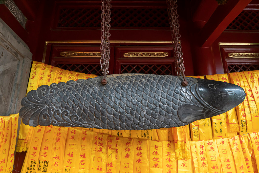 龙王庙里按说应该是有龙王像的,这里并没有,也可能以前有。龙王殿最神奇的是前檐廊下西侧挂着的那艘石鱼。