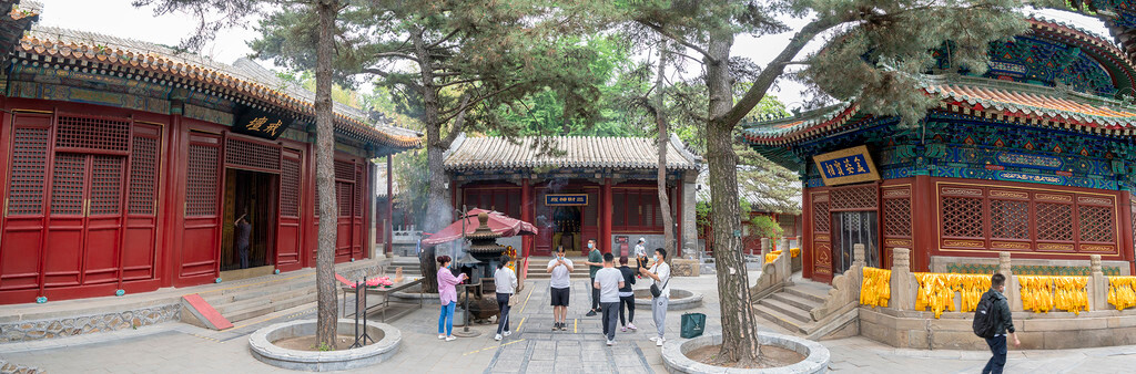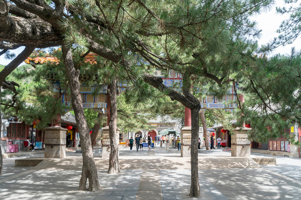 天王殿两边有院墙,墙上有门。山门和天王殿之间是寺内第一进院子,就是天王殿广场。过了天王殿再上一层,是二进院大雄宝殿广场。