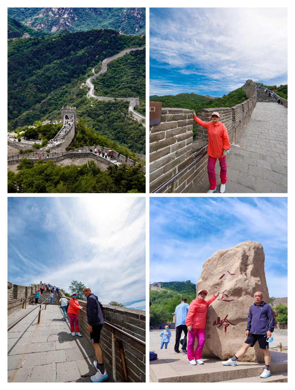 D2长城走起,德胜门有公交车877路可以直达路程要1小时多具体看交通流量,6点第一班车。建议是早一点出 发,要不会堵在出城的路上。八达岭长城分两个方向,北长城和南长城,北长城是必爬路线,南长城可以选择 去或不去。我去的时候开放到北8楼,一共北12楼。有三种方式到北八楼,1是全程徒步上去,老两口60岁感觉 压力不大,边走边拍照,随时休息。老两口以为是年纪算大的,结果遇见个老奶奶87岁!有家人陪着,超级厉 害。2是滑车,坐到北4楼开始爬。3是877下车之后走个30分钟去做缆车上感觉除非身体太差,要不不建议缆 车。返程还是下车的地方坐877,3点到的德胜门,然后趁着人少去南锣鼓巷吃聚宝源火锅然后逛逛南锣鼓巷, 他家的味道还是不错的。然后就回民宿休息了。
