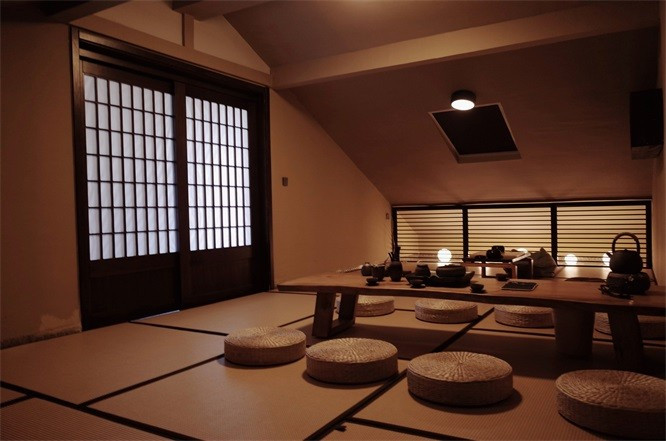 一间清新雅致的茶舍,简单朴素、不落俗套。一处茶席,一套茶具,一束插花,几张木椅,简约到了极致,给人一个诗意存在的空间。