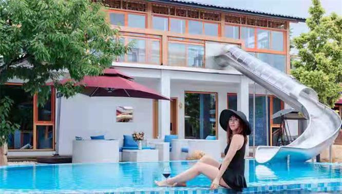 在长城脚下,在这依山傍水之间建起了一座小院,院中有一颗大树,一颗仲夏之月挂满樱桃果的遮阳树,树上偶尔儿可闻蝉鸣一两声,慵懒地坐卧在树下的吊床上,看着淡日透过云隙照耀在碧蓝色的泳池中,波光粼粼,满院子的鹅卵石被日光熏的暖洋洋儿的,赤着脚踩下去,嗯?心都温柔了起来。这儿,就是我的小院,一间存于世俗与小雅之间的山居之所。