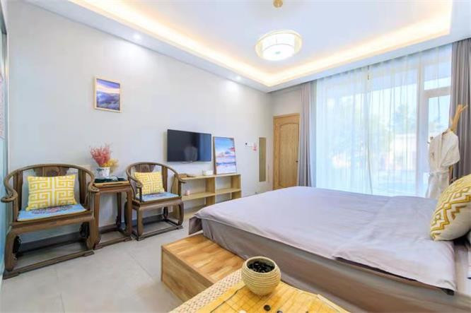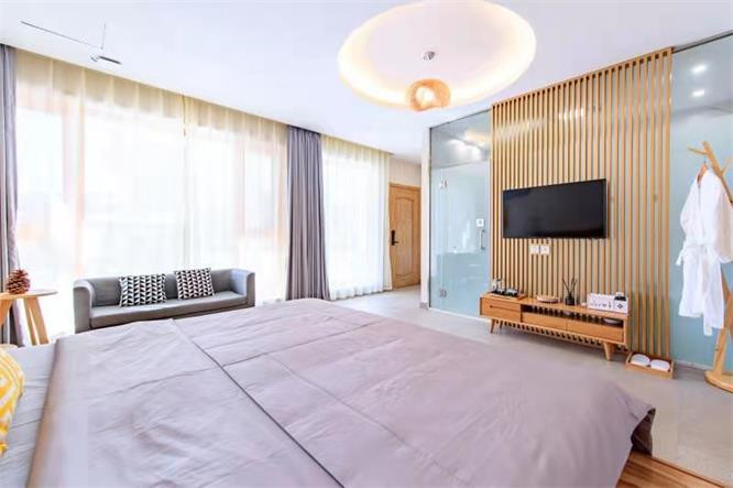 当然,每一间客房也都配备各种日常所需的现代化设备,空调、地暖、电视、热水器等一应俱全,无论何时入住,都能体验到十足的舒适感。