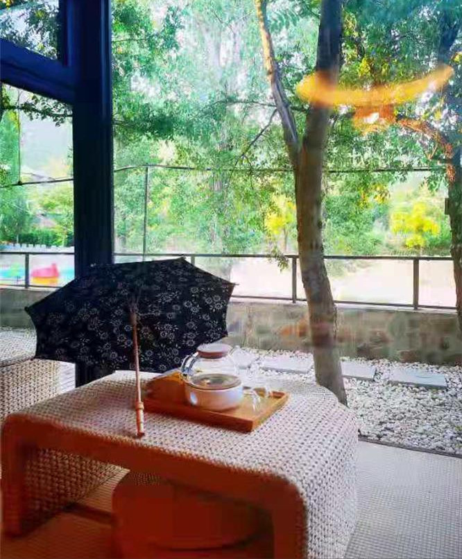 古朴的原木材质自然与现代风情的结合,简约明朗的装饰,在这个依山傍水的院子里,聊天,品茶,喝酒,嬉笑,看云,发呆,望长城…过向往的生活。