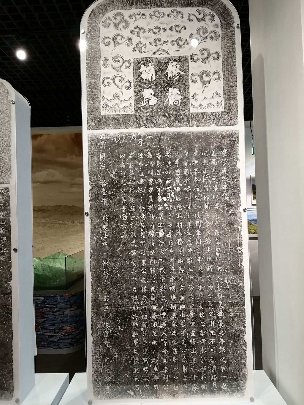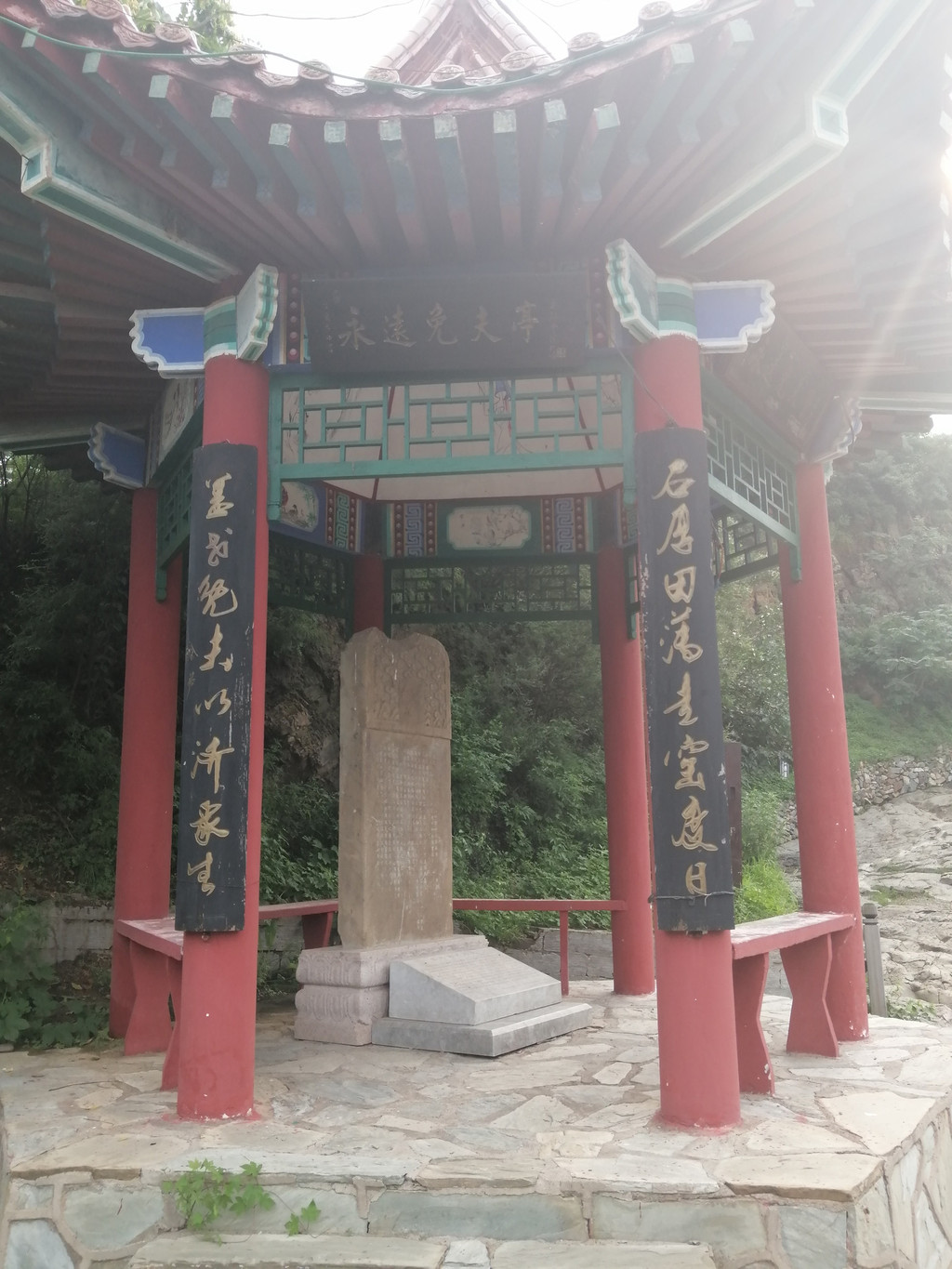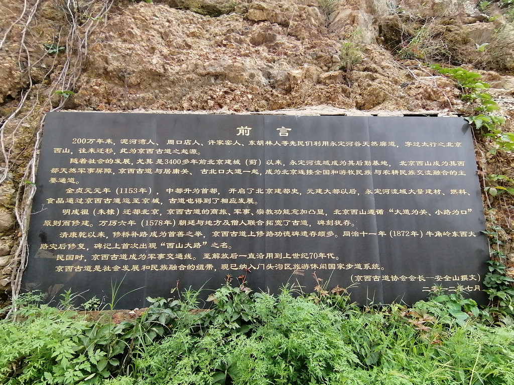 另一块是清朝同治十一年(1872年)所立“重修西山大路碑”。碑文曰:“盖闻造桥梁以济人渡,修道路以便人行,务民之义,此善举第一也。况西山一带仰赖乌金以资生理,而京师吹爨之用,尤不可缺。道路忽尔梗塞,各行生计攸关。”碑文中记载了同治十年,暴雨成灾,冲毁道路,民间举善修复道路的情况。这两块石碑是研究京西古道历史重要史料,现在专门建了碑亭将这座石碑保护起来。