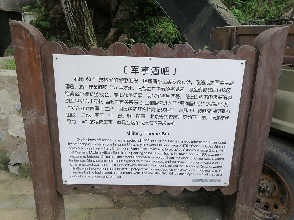 0498。04是一个国防工程代号,当年林彪在世时搞的,还没完工。98,即酒吧。现在这儿打造成了一个军事主题的酒吧。