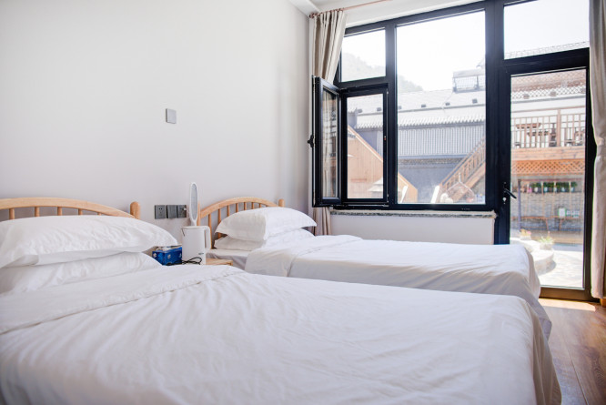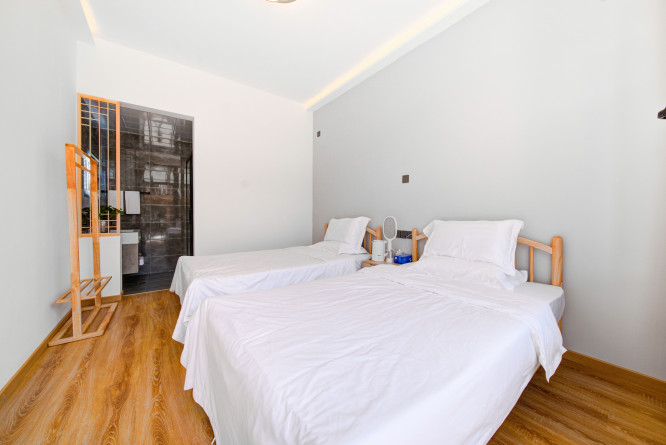民宿客房以颜色白色为主,散发出一种儒雅自然的清晰格调,泡上一壶爱喝的茶,几杯茶下肚,看着窗外的小景,也是惬意妥帖,坐看云起,展卷闲茗,诗意栖居,方寸净明。