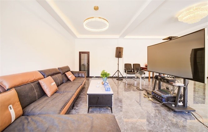 民宿可以做饭,有完善的厨房用品,各种厨具和餐具都非常齐全,喜欢烹饪的可以自己动手做饭,还有精致的娱乐设施,KTV,内部的装饰也都是温馨,让人舒缓压力放松身心,推开门便能看到门外自然景致,很适合带娃居住哦!