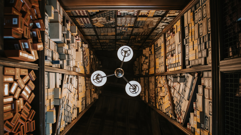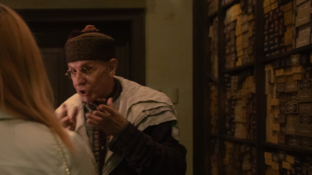 《哈利·波特》迷们在这必须要有一根属于自己的魔杖,玻璃橱窗前的地上有个明显站位,挥动魔杖