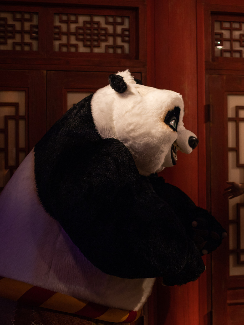 功夫熊猫盖世之地景区的场景、建筑都和电影中一模一样,可以说既在现实中,又在电影里。一只圆滚滚的贪吃熊猫如何成为武林高手?“功夫熊猫盖世之地”打造了一个全封闭梦境,满满的中国风元素带你穿越到古代,一手握拳,一手执掌,敢问大侠要去何方。