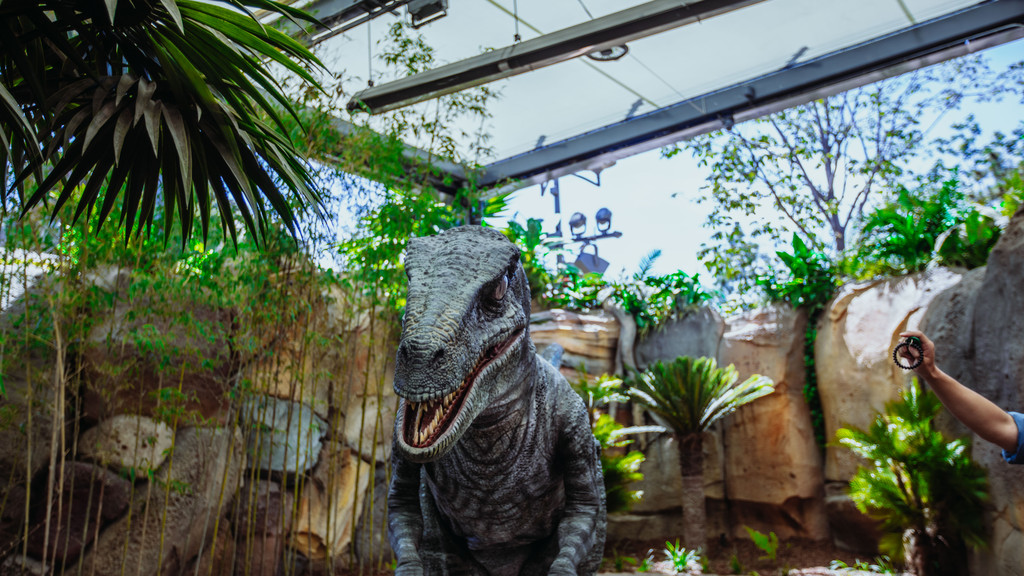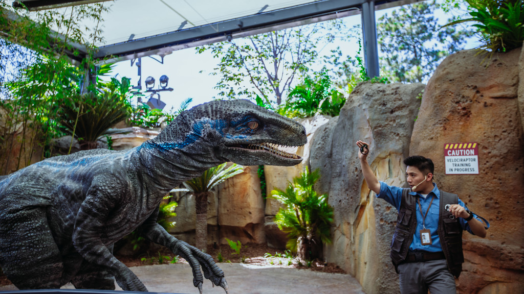 和迅猛龙面对面是一种怎么样的感受呢,如果要让你驯服一只迅猛龙你又作何感想呢,在侏罗纪营地近距离接触这个又凶猛又聪明的家伙,虽然明知道它不会伤害我,但压迫感还是让我心跳加速,再来一声龙吼,瞬间惊叫出来。