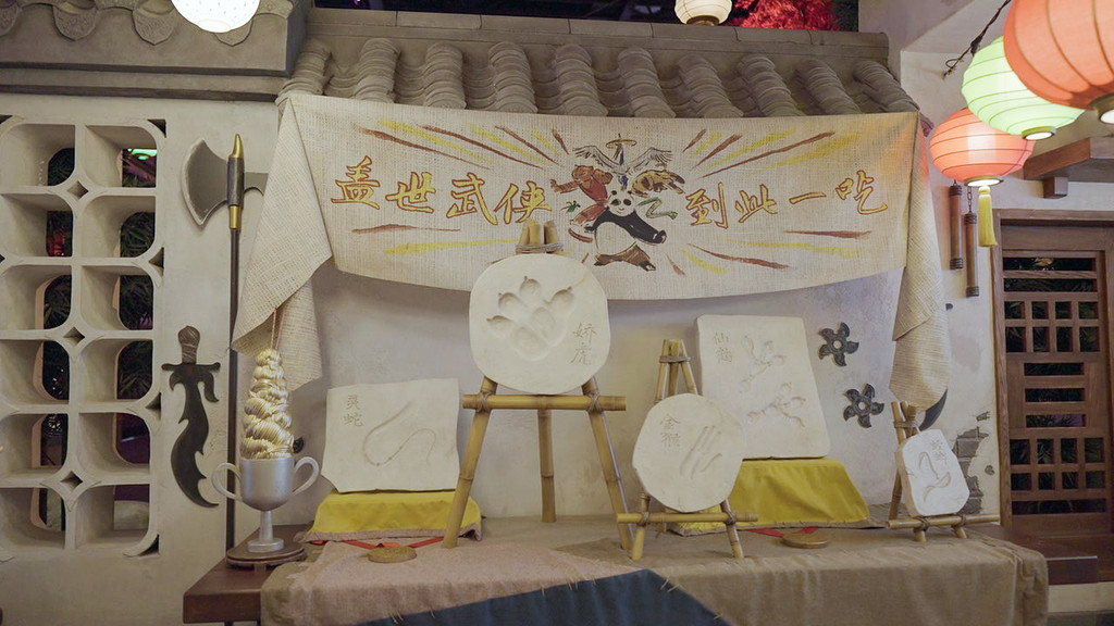 功夫熊猫盖世之地是一个建在室内的园区冬暖夏凉,遇到的服务人员都会一手握拳,一手执掌,称呼一声大侠,特别有意思。
