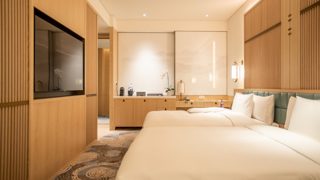 “环球影城大酒店“以现代摩登的方式重新演绎二十世纪初的电影文化,酒店外观采用西班牙风格,就在北京环球影城的入口处,绝对的快人一步进入园区,经典的功夫熊猫主题的客房里处处都能看到电影元素,里面的床头柜、平先生面馆的长桌都是场景重现。
