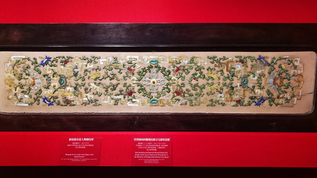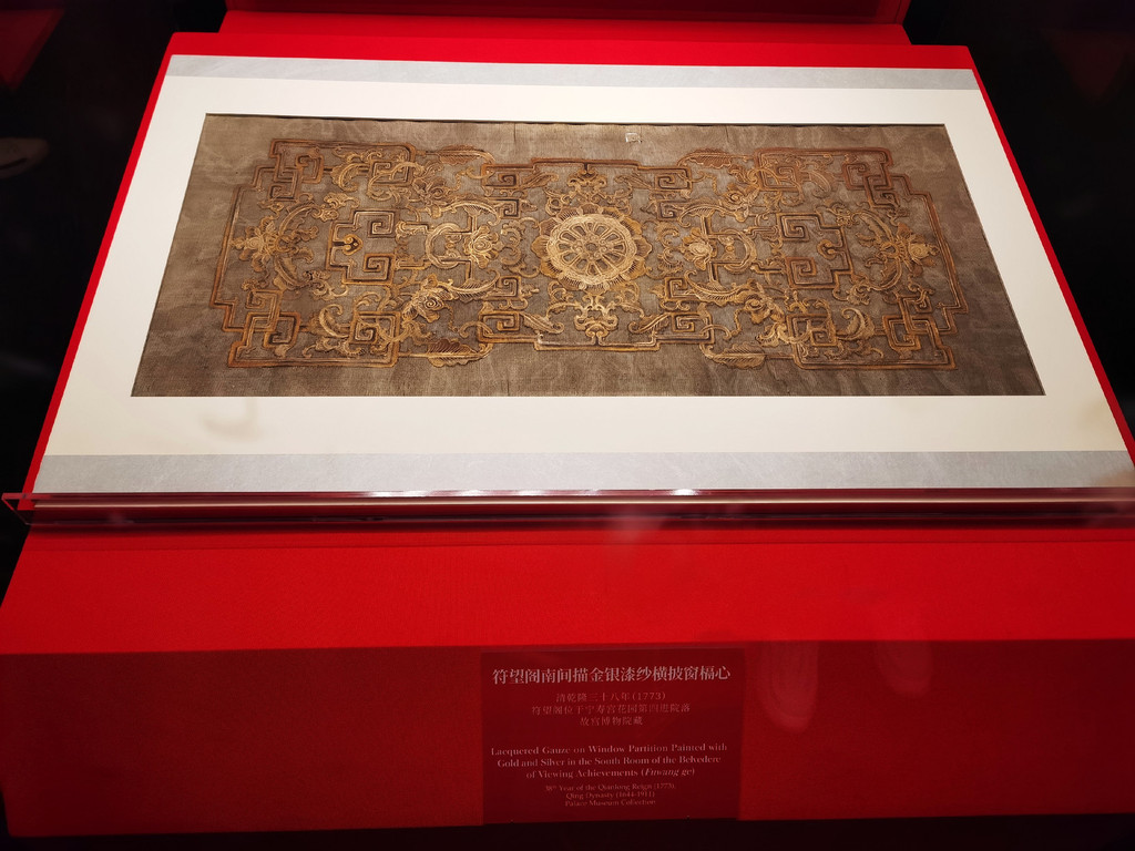 这片漆纱是符望阁的“纱窗”,符望阁是宁寿宫花园中最高大的建筑,这个花园是乾隆为自己“退休”后专门修建的。在现代生活中,纱窗很常见,而“符望阁漆纱”能成为珍贵的文物,最主要的原因就是因为它很难保存下来。因为它表面非常脆弱,以后很难有再次公开展出的机会了。