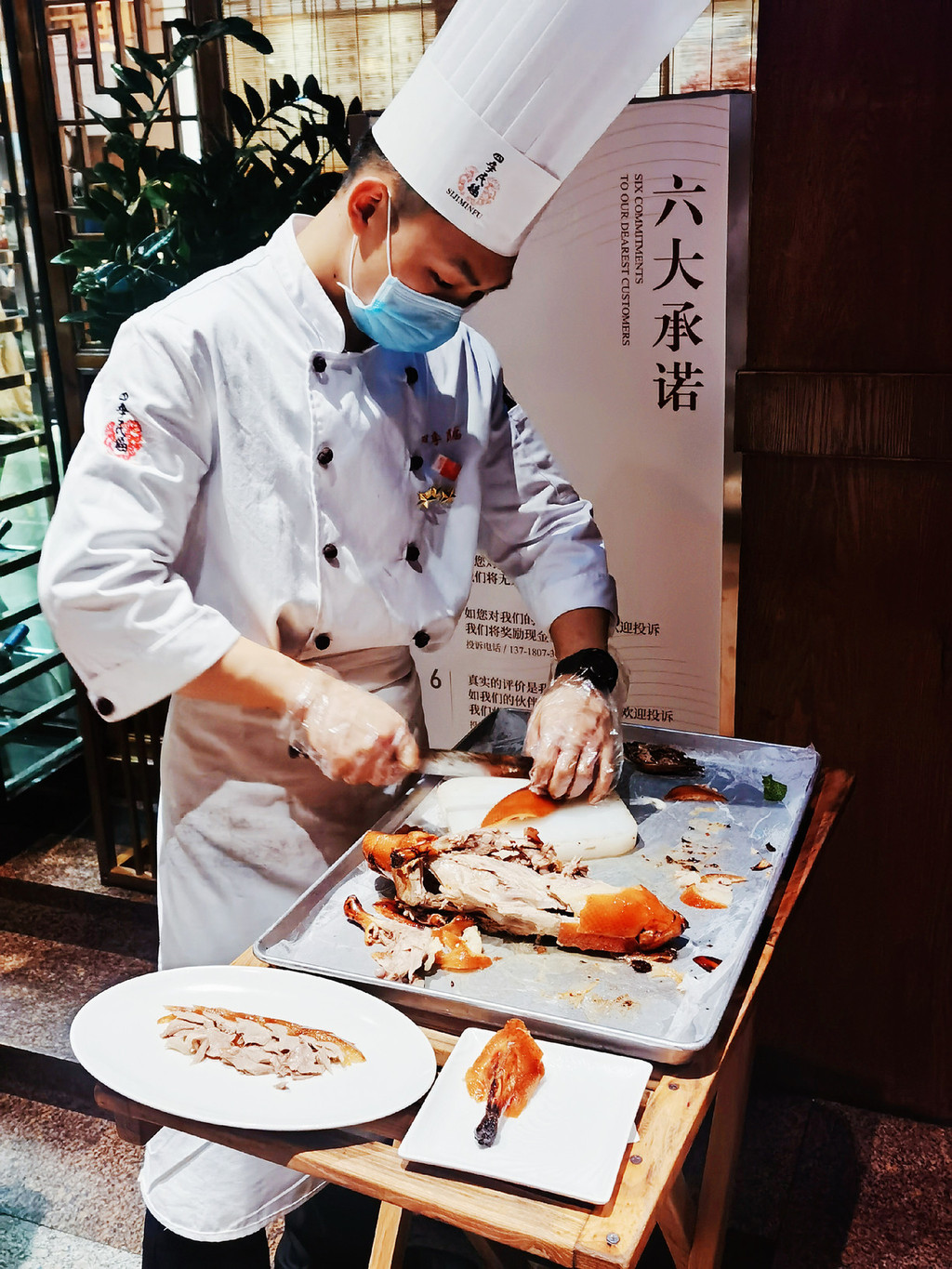 本来想去同事推荐的四季民福吃烤鸭,没想到都下午一点多了,离我们最近的门店门口还在大排长龙!赵大哥马上带着我去往500米开外的另一家门店,还是大排长龙!没关系,赵大哥仍不死心,附近还有一家,结果等我们赶到一看,依然是大排长龙!没想到四季民福这么受欢迎,又恰逢国庆期间,看这三家店的人气,不排个三小时是吃不到了。我们只能退而求其次,晚点再来碰运气吧。