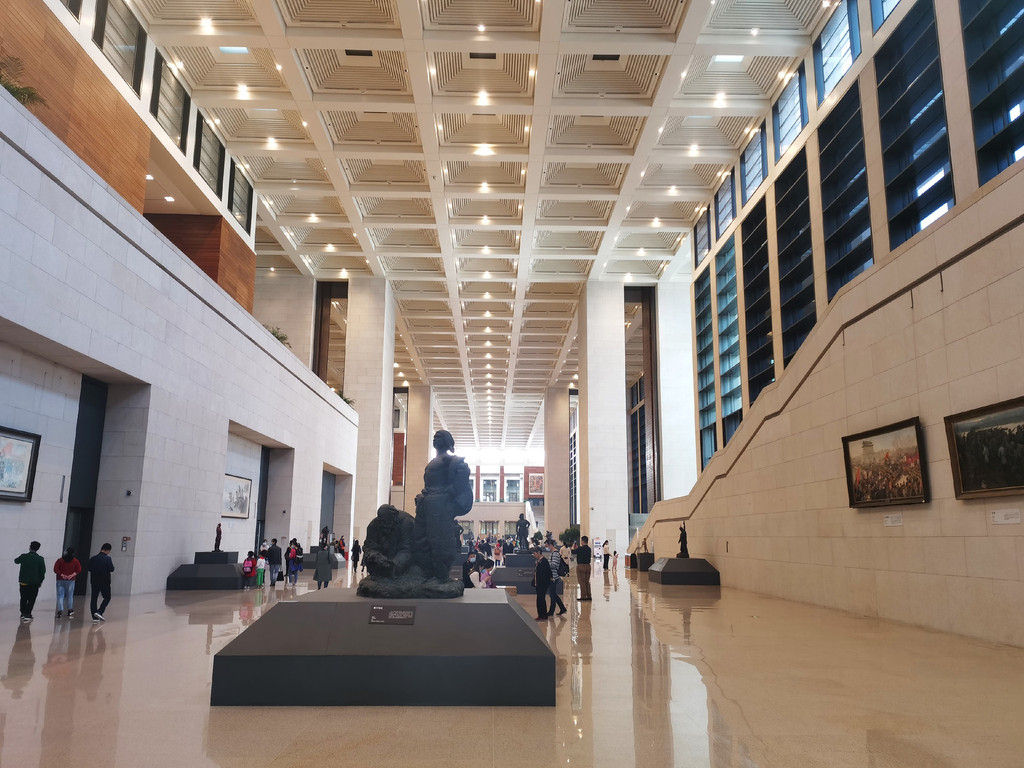 离开角楼,我们的下一个目标是国家博物馆。虽然和隔壁邻居故宫比起来名气似乎小了些,但其实国博是世界上单体建筑面积最大的博物馆,是中华文物收藏量最丰富的博物馆之一。