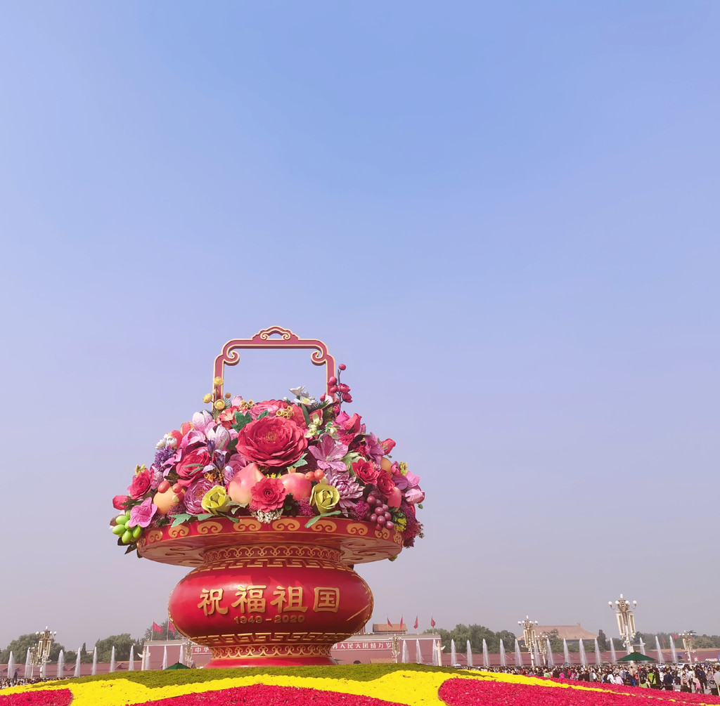 从国博出来,直接通往天安门广场,这下不用安检了,因为进国博前都已经安检过了。顺手给天安门广场上的大花篮上个镜: