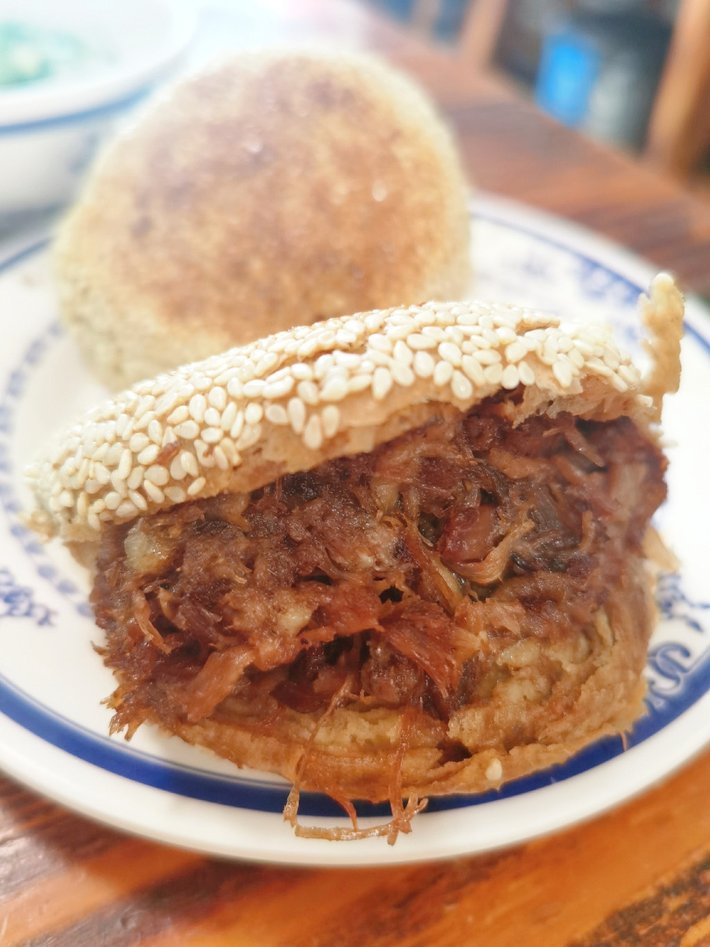 最后中午来一顿老北京爆肚,再来一份烧饼夹肉,结结实实,才八块一个,实惠得很: