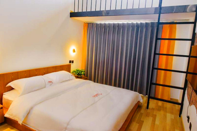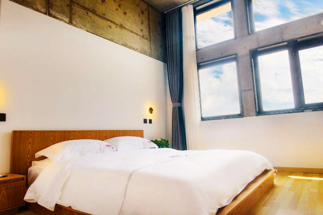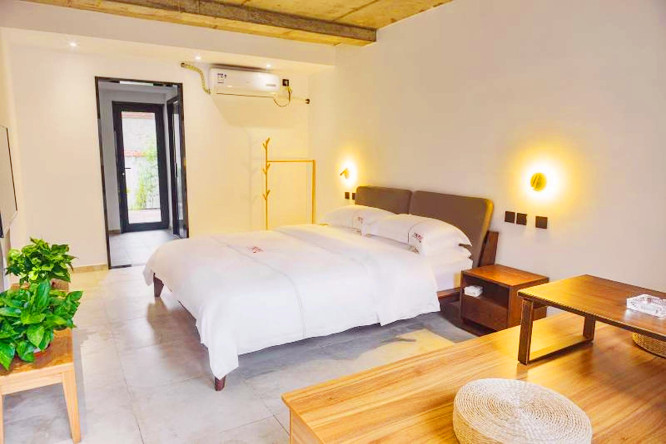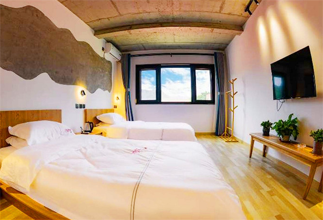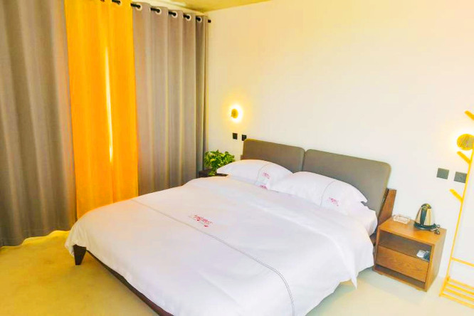 延庆玉渡山九悦柿红精品民宿,共计客房18间,可容纳40人住宿,其中两室一厅套间1套,星空房套间两室一厅1套,星空房大床房1间,跃层大床房1间,标间2间,下沉庭院房1间,精品大床房11间,房间均是全透明落地窗,采光特别好,拉开窗帘就是可以看到山景,房间内的设施齐全。