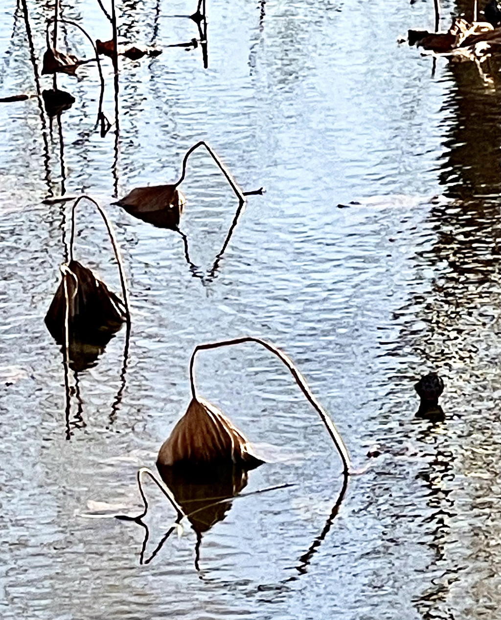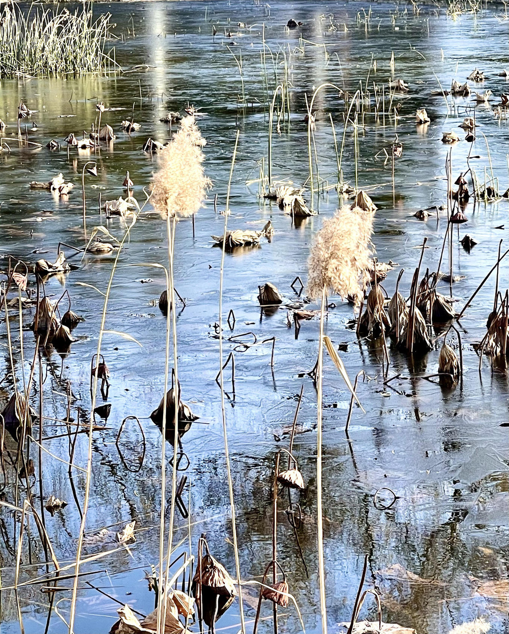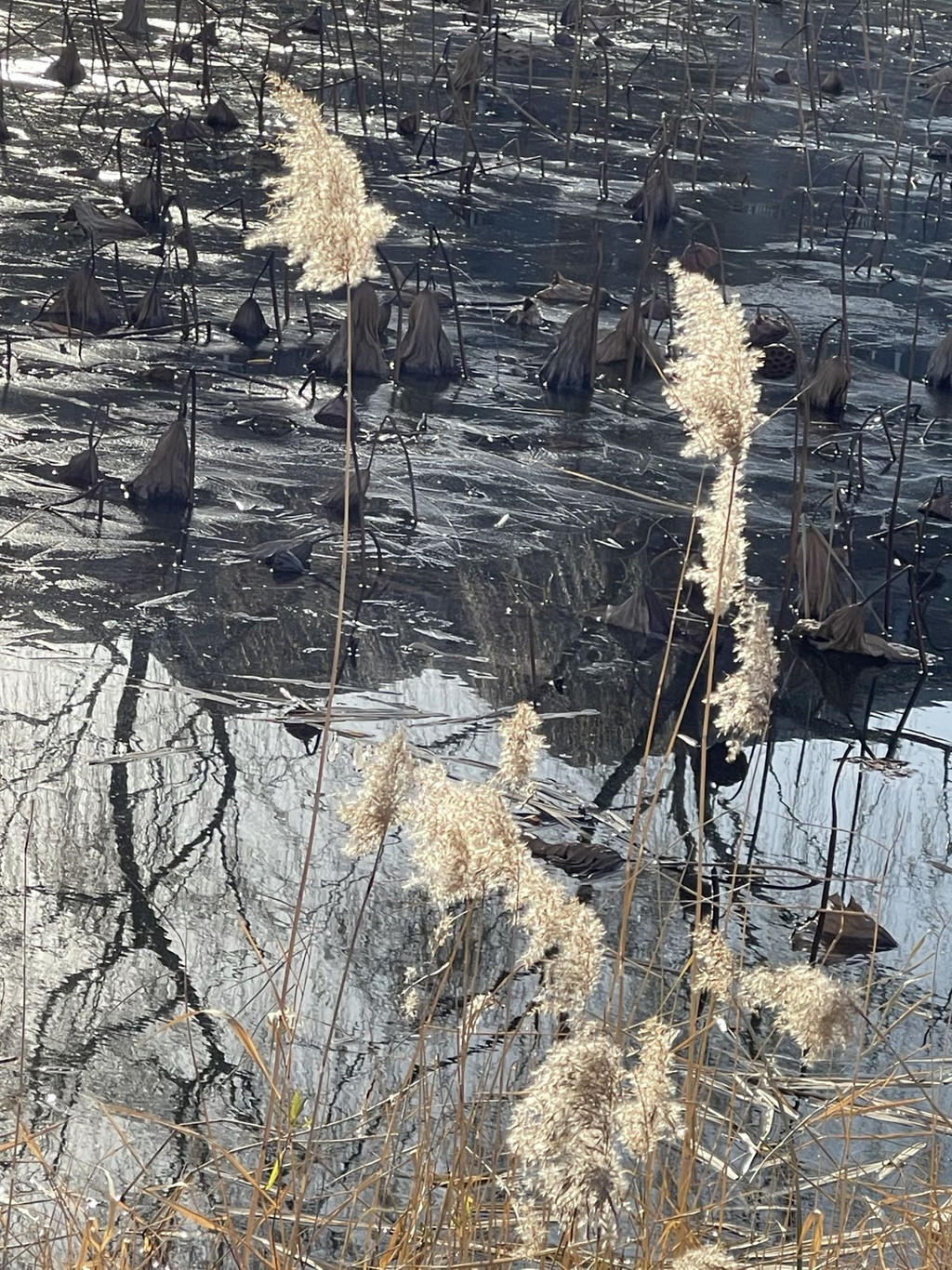 今天前去打卡,沿湖走一圈,明媚阳光下,湖水碧波荡漾,枯荷展示最后的凄美,还有成片的芦苇,棉絮般的芦苇花,在微风中摇曳。远处的上世纪京城第一个游乐园遗留下来大转轮高高屹立。