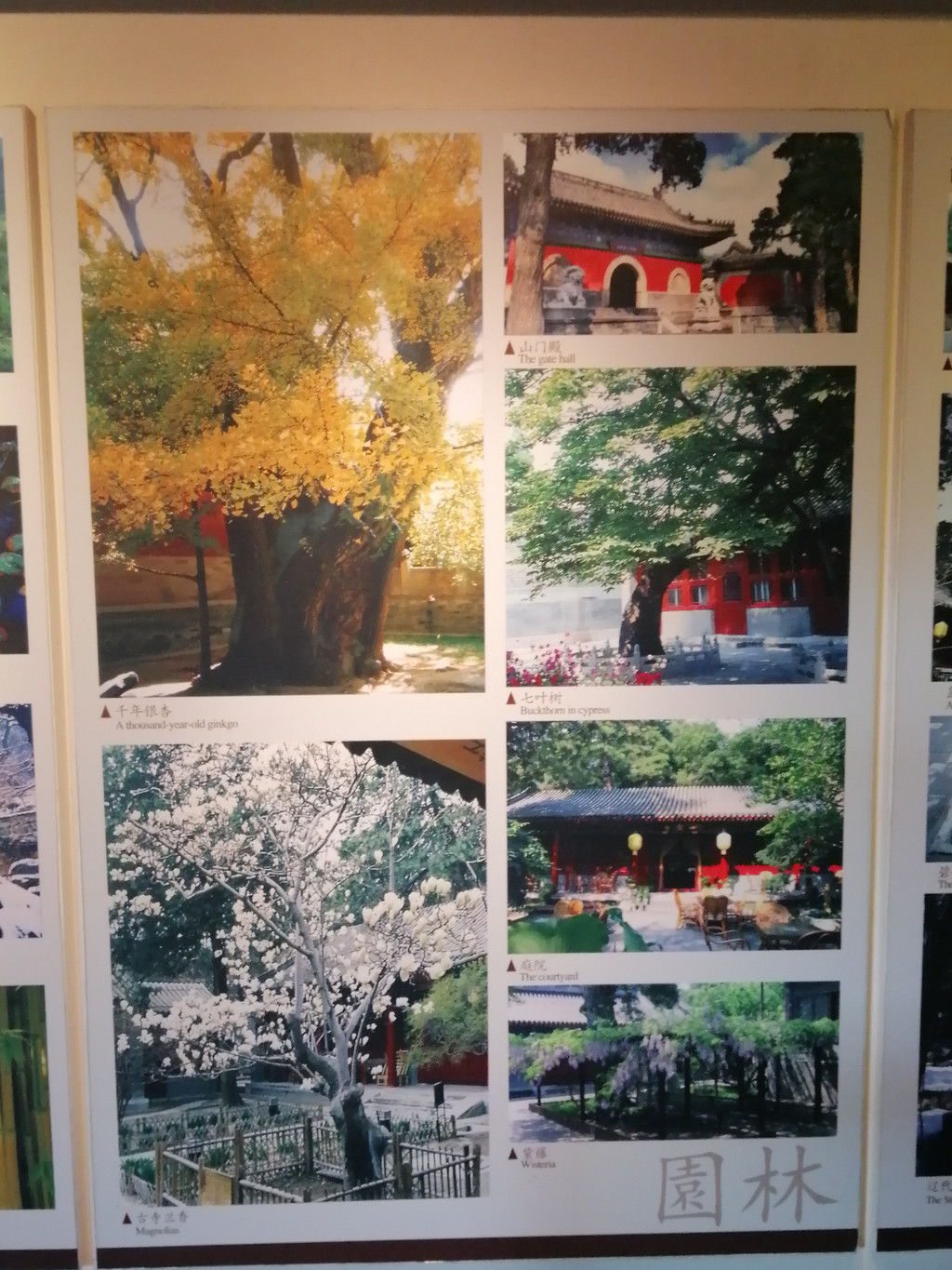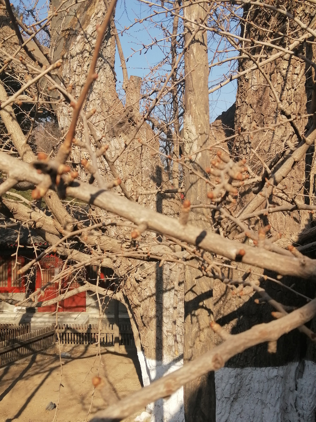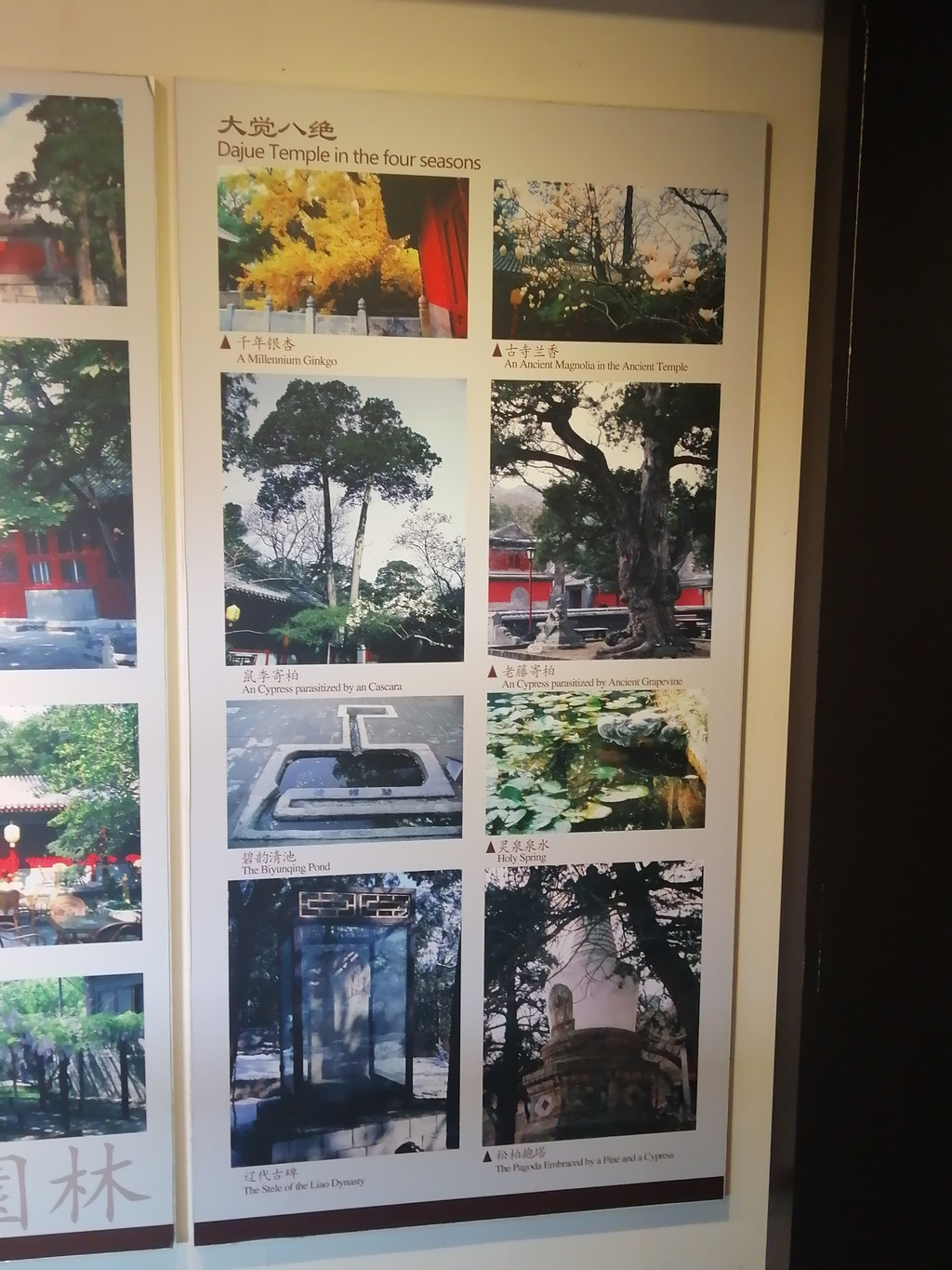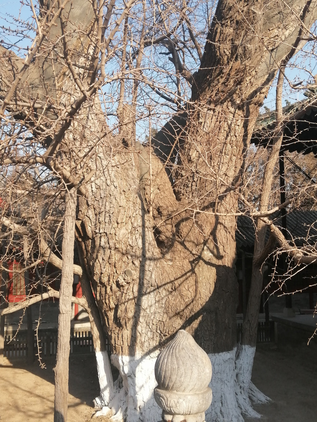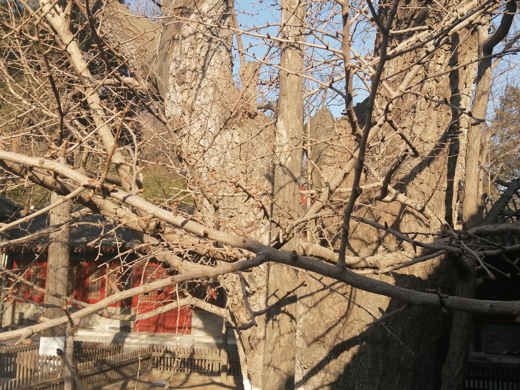四绝“千年银杏”:千年银杏在无量寿佛殿前,有一株古银杏树,树冠的浓荫遮盖了大半个庭院。树千之粗,要有五六个人张开两臂手牵手才能围拢。乾隆曾为其赋诗:“古柯不计数人围,叶茂孙枝绿荫肥,世外沧桑阅如幻,开山大定记依稀。”它确实可说是与寺院同龄了。遗憾的是,它是一株雄树,一千年来从未结过一个果。