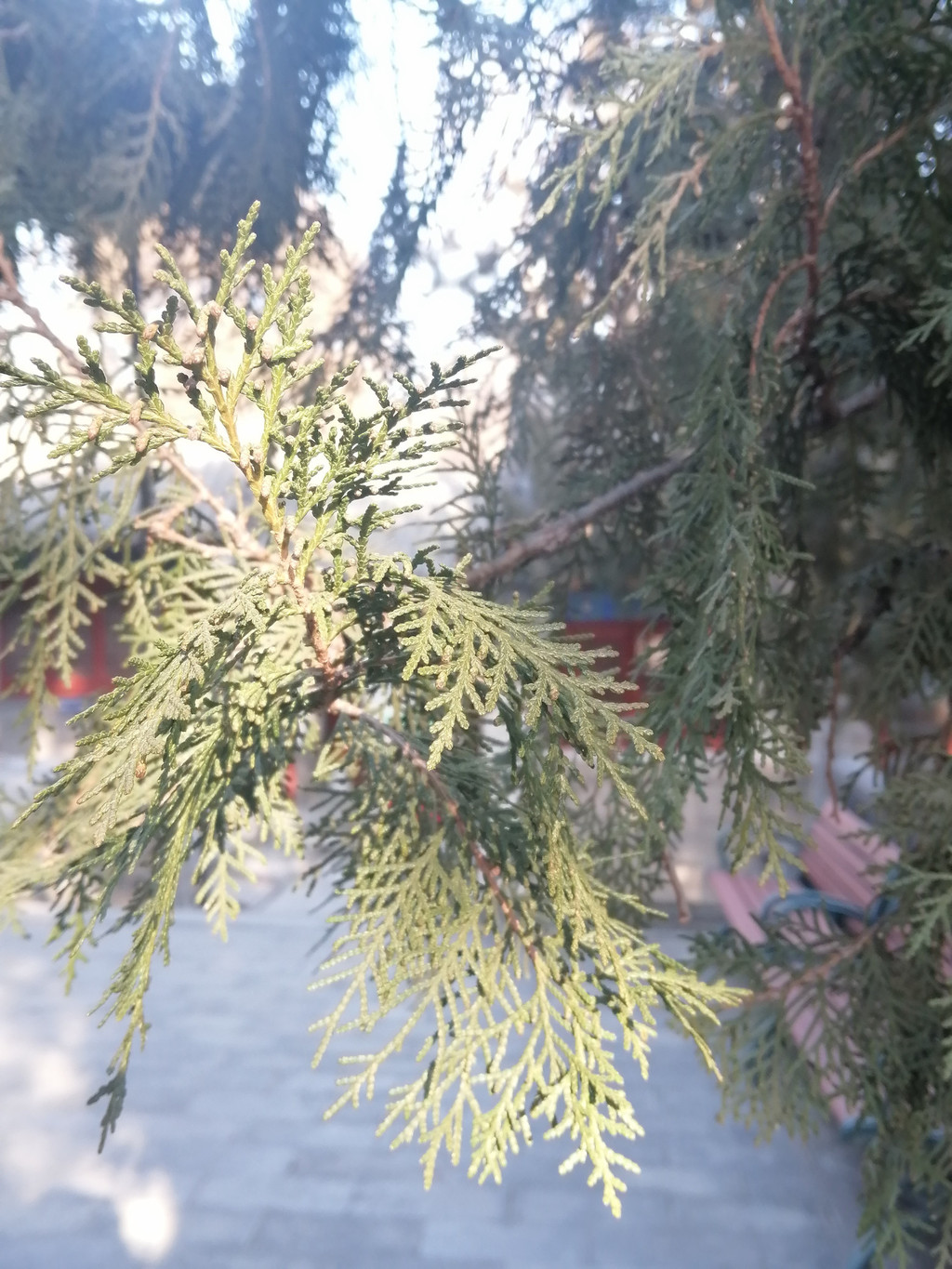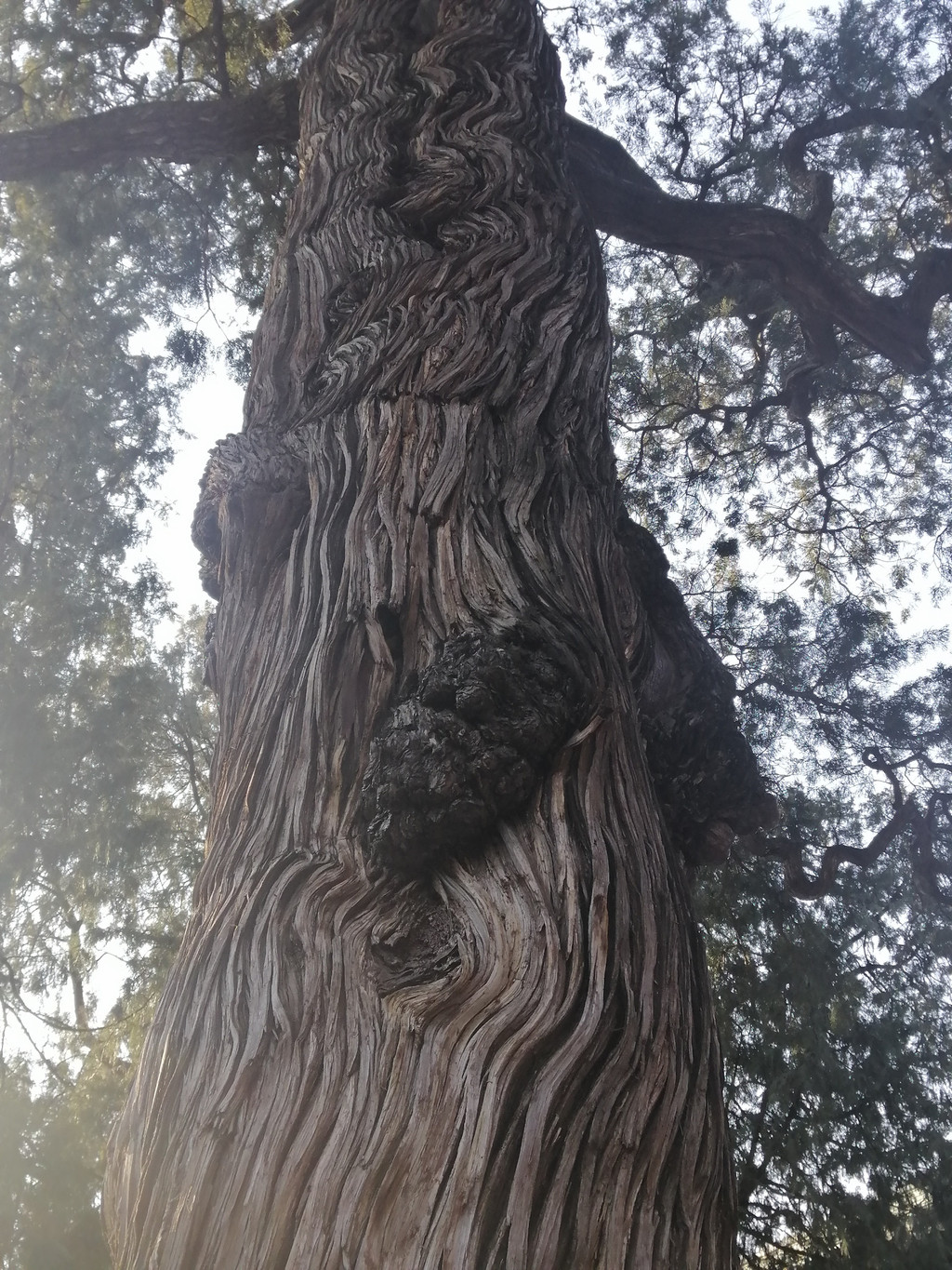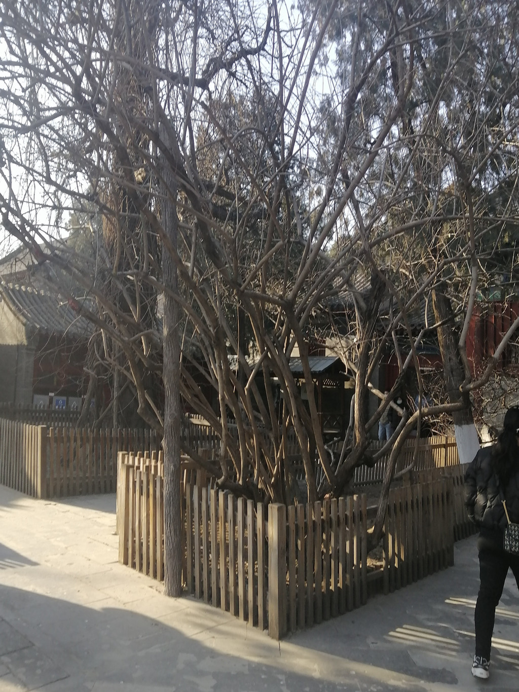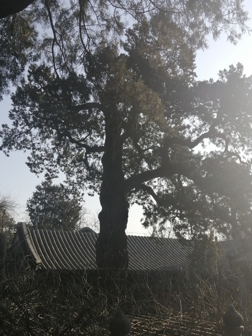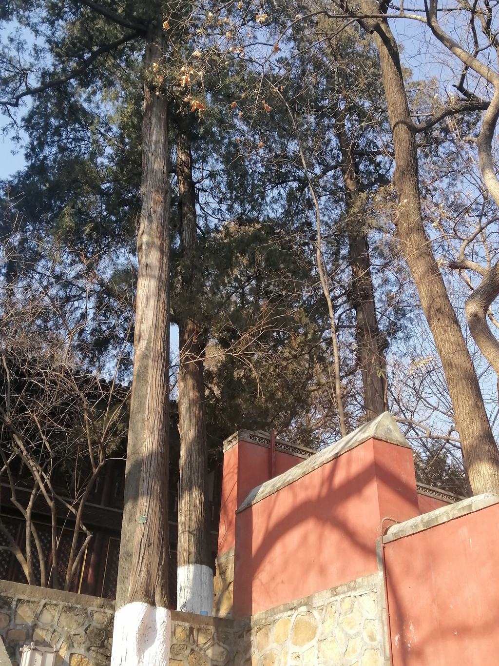 一绝“老腾寄柏”:在山门内,功德池的石桥东端有一株古老的桧柏树,根结如瘤,足有五百多年的树龄,在树干半空的心部,寄生着一株老藤,粗壮的躯干显示出它已有近百年的历史了。