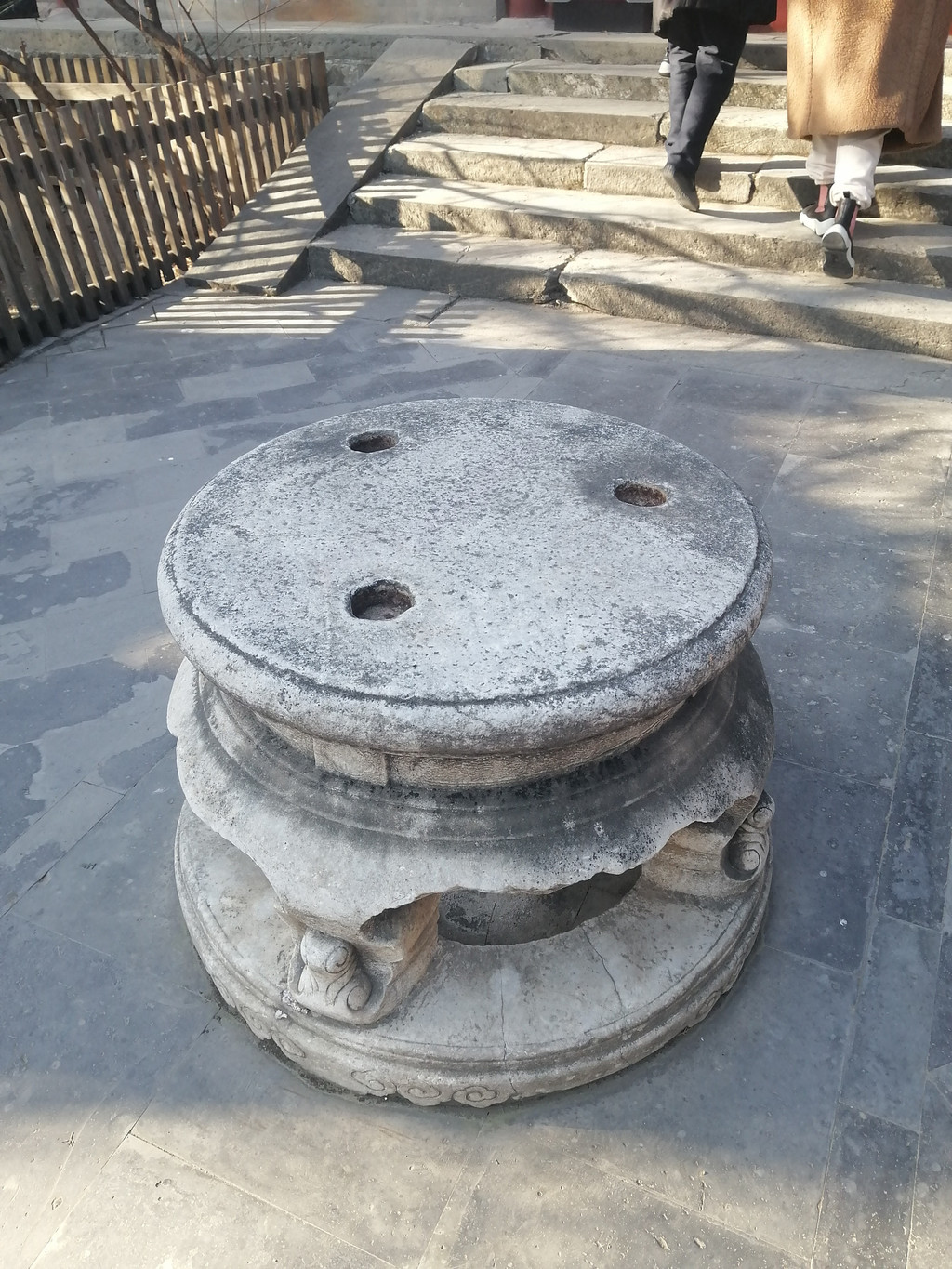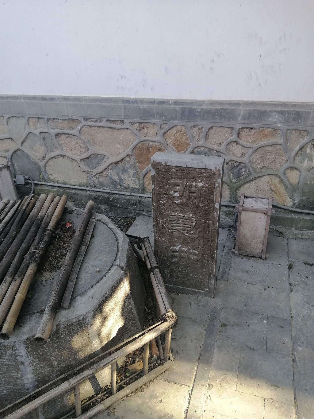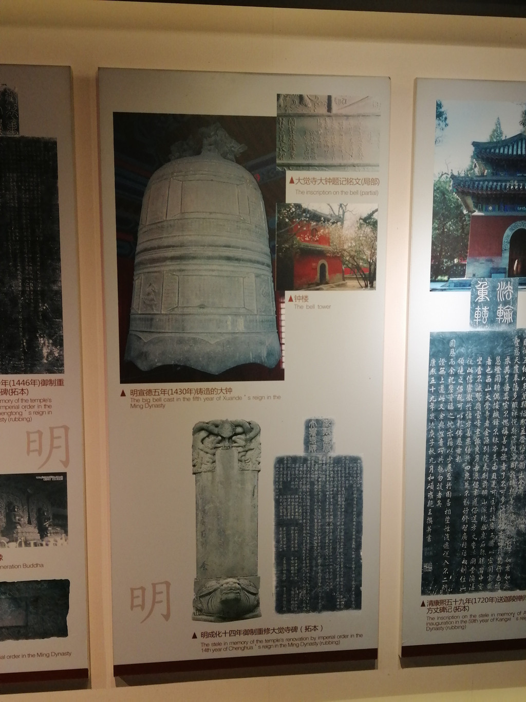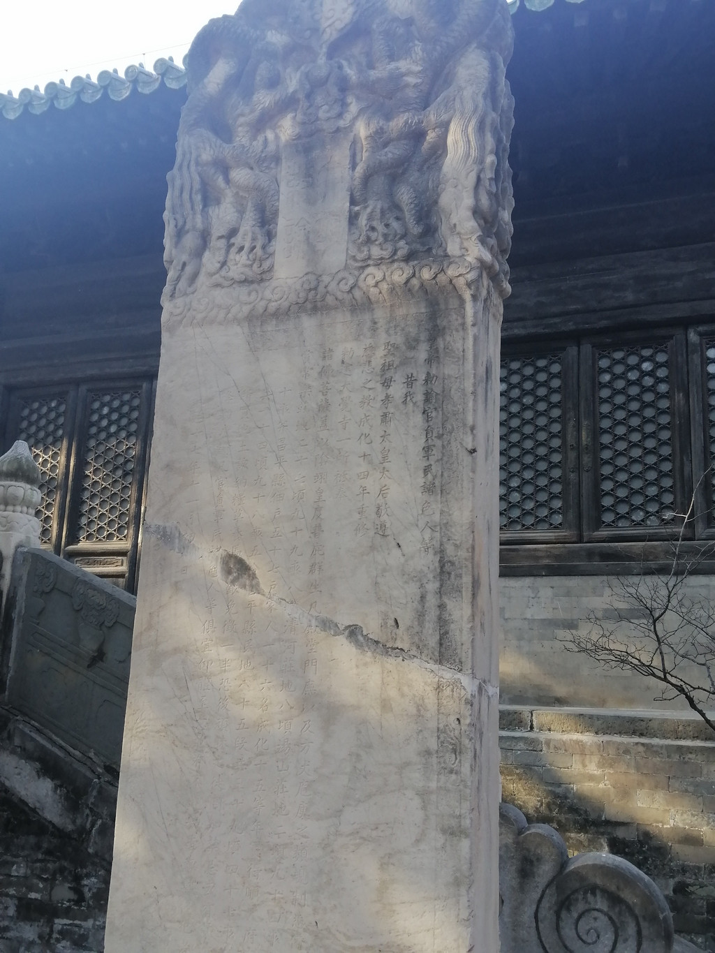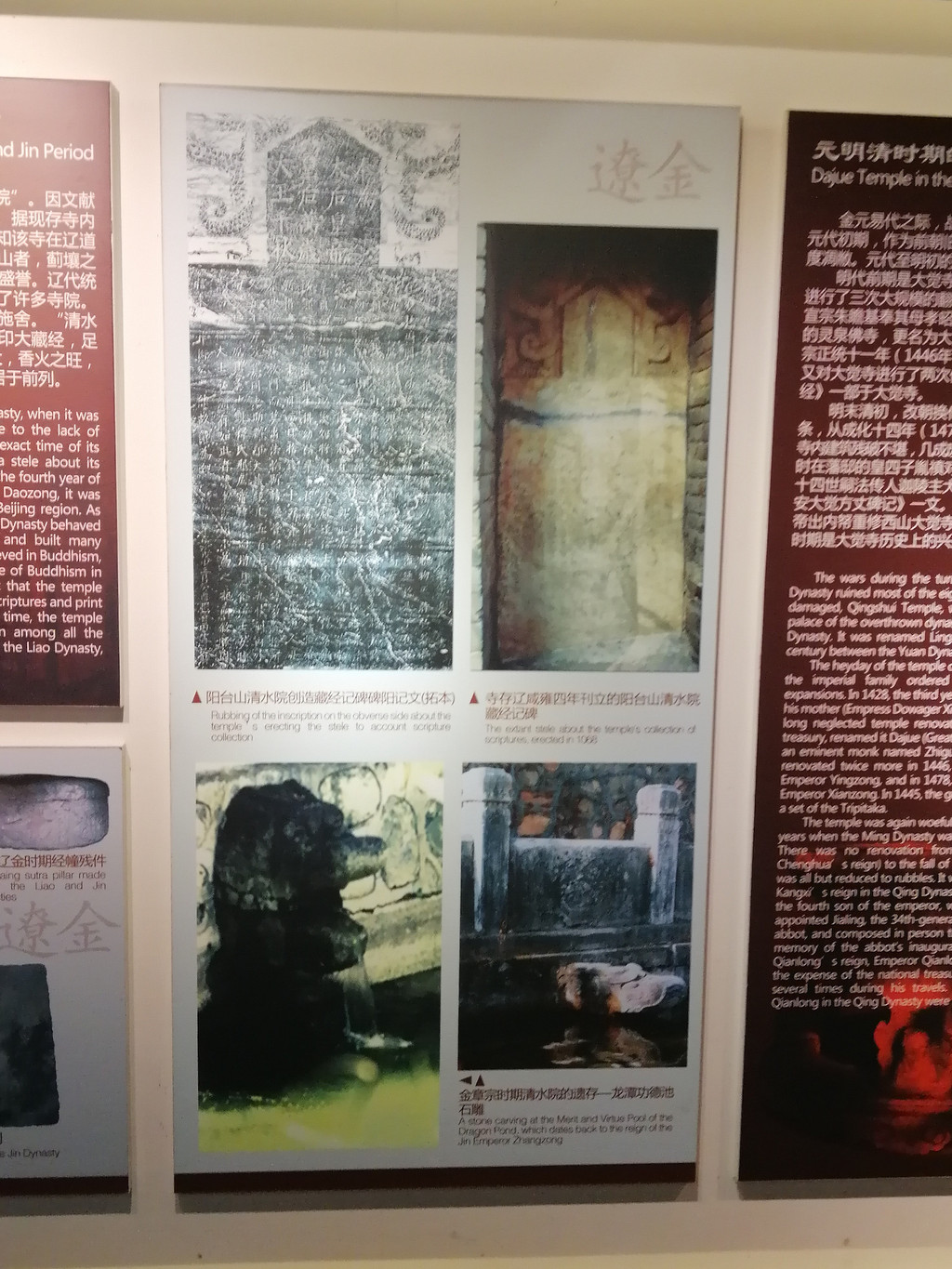第四进院落以大悲坛为中心。北侧有一座一米多高、璃首龟跃的辽代古碑,镌刻着《阳台山清水院创造藏经记》碑文。
