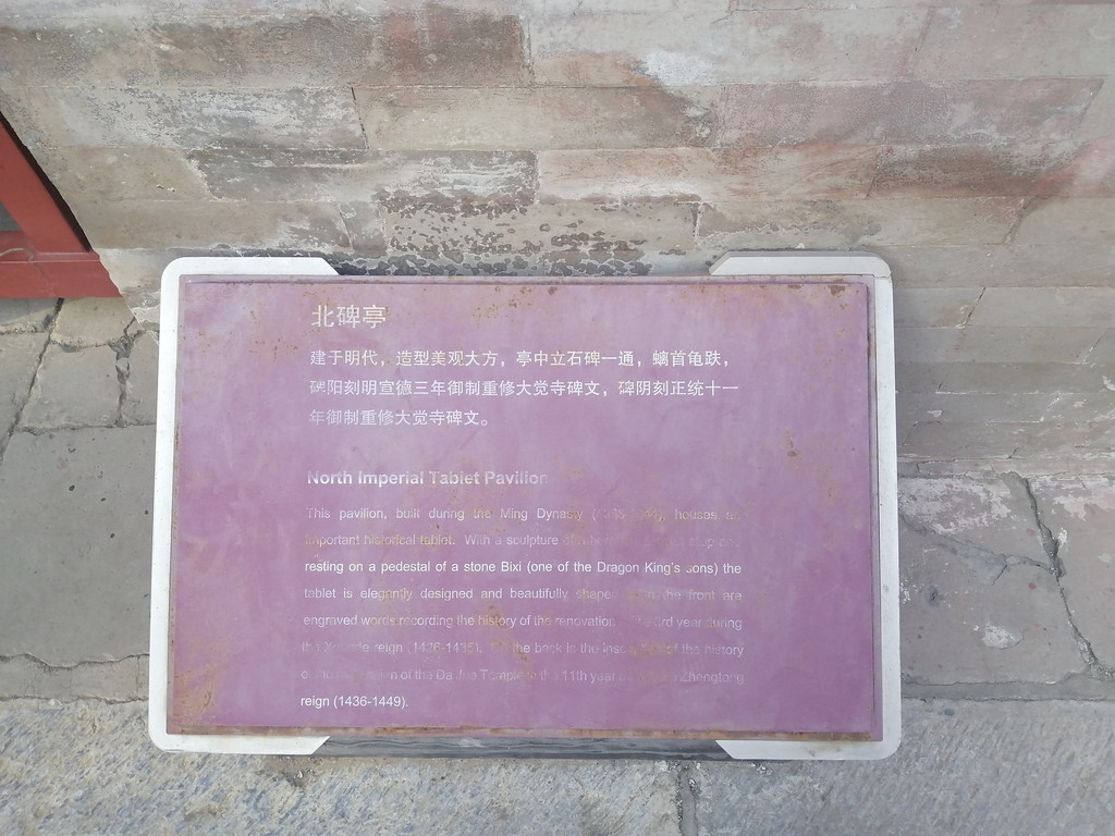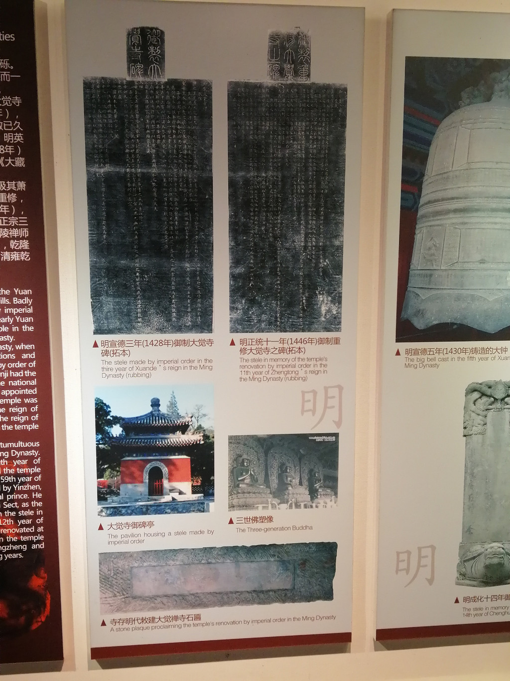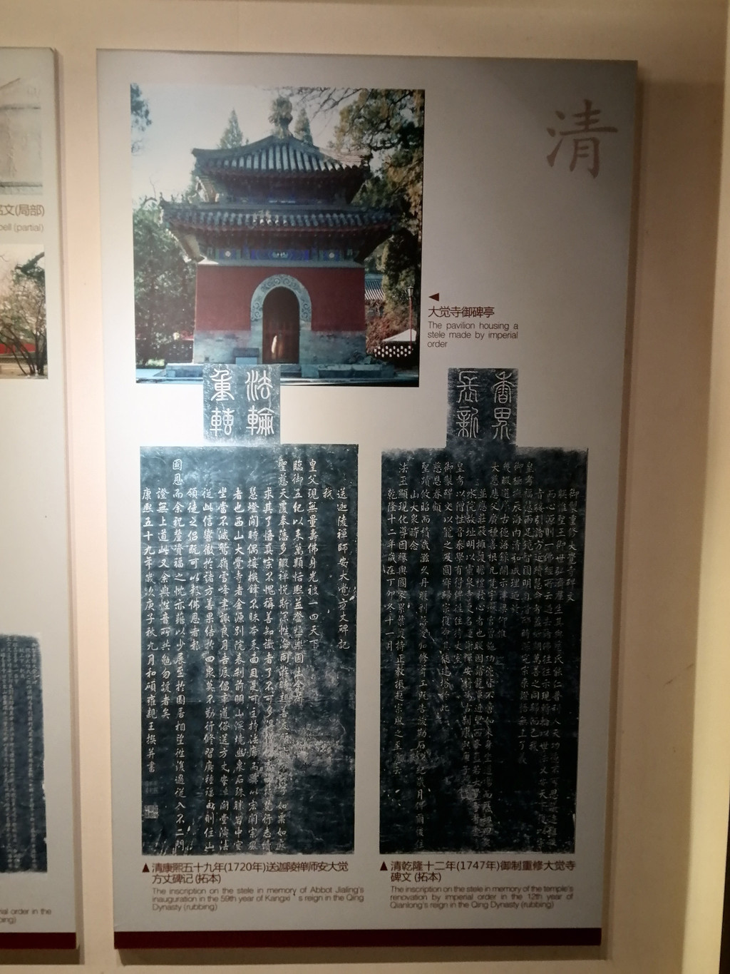 金、元易代之际,战乱频仍,西山八大水院多劫灰瓦砾,年久失修,大觉寺逐渐衰败。根据明宣德三年(1428年)《御制大觉寺碑记》中“北京旸台山固有灵泉佛寺”的记述推测,元代和明代的百余年间,该寺曾铭灵泉寺。