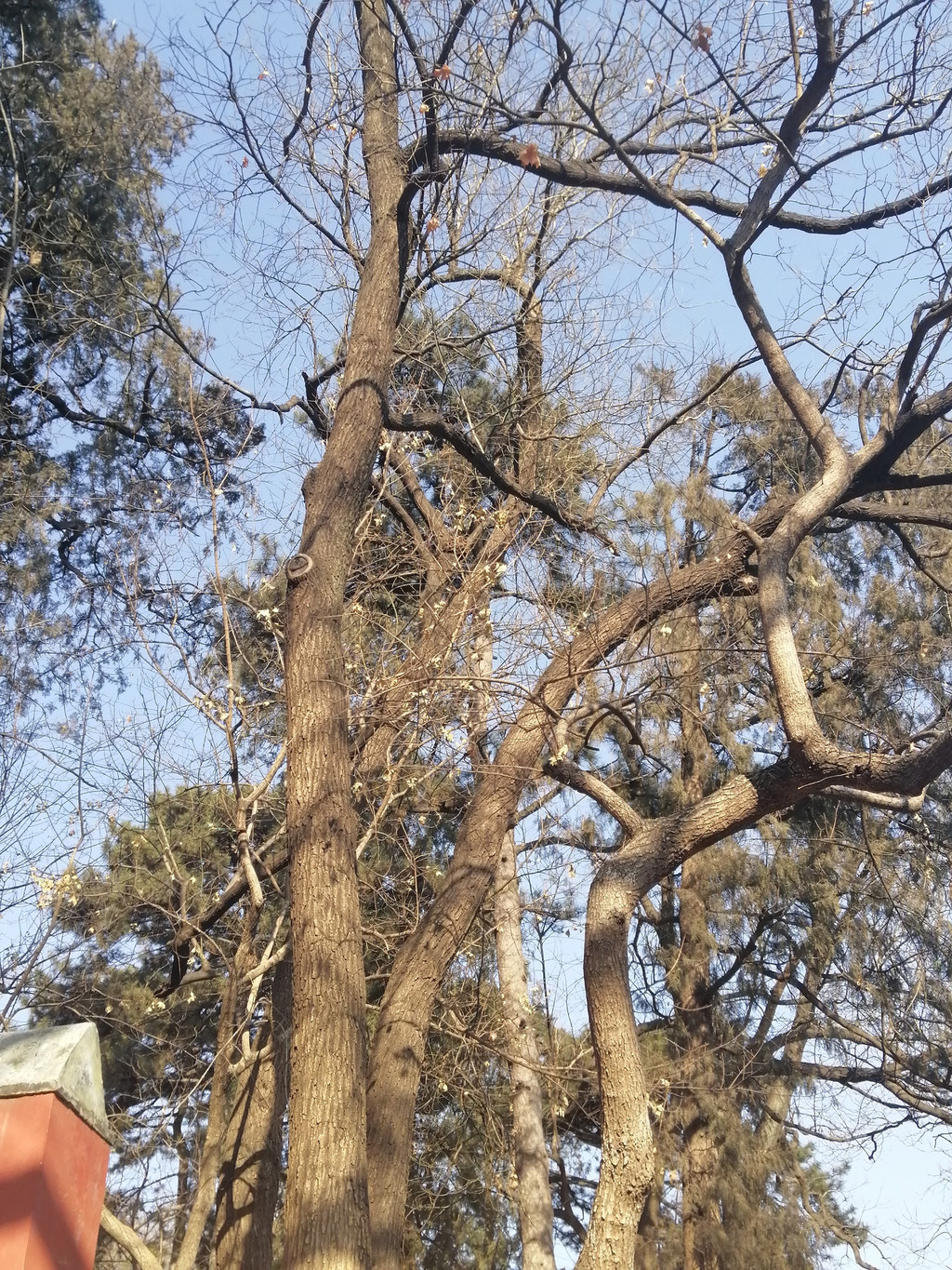 六绝“鼠李寄柏”:在四宜堂前的玉兰树旁,有一棵巨大的柏树,距根部一米多处,分成两个枝干,在两枝之间的缝隙里寄生出一株小叶鼠李树。它们在这里也共生了上百个春秋,仍是郁郁葱葱,生机勃勃。