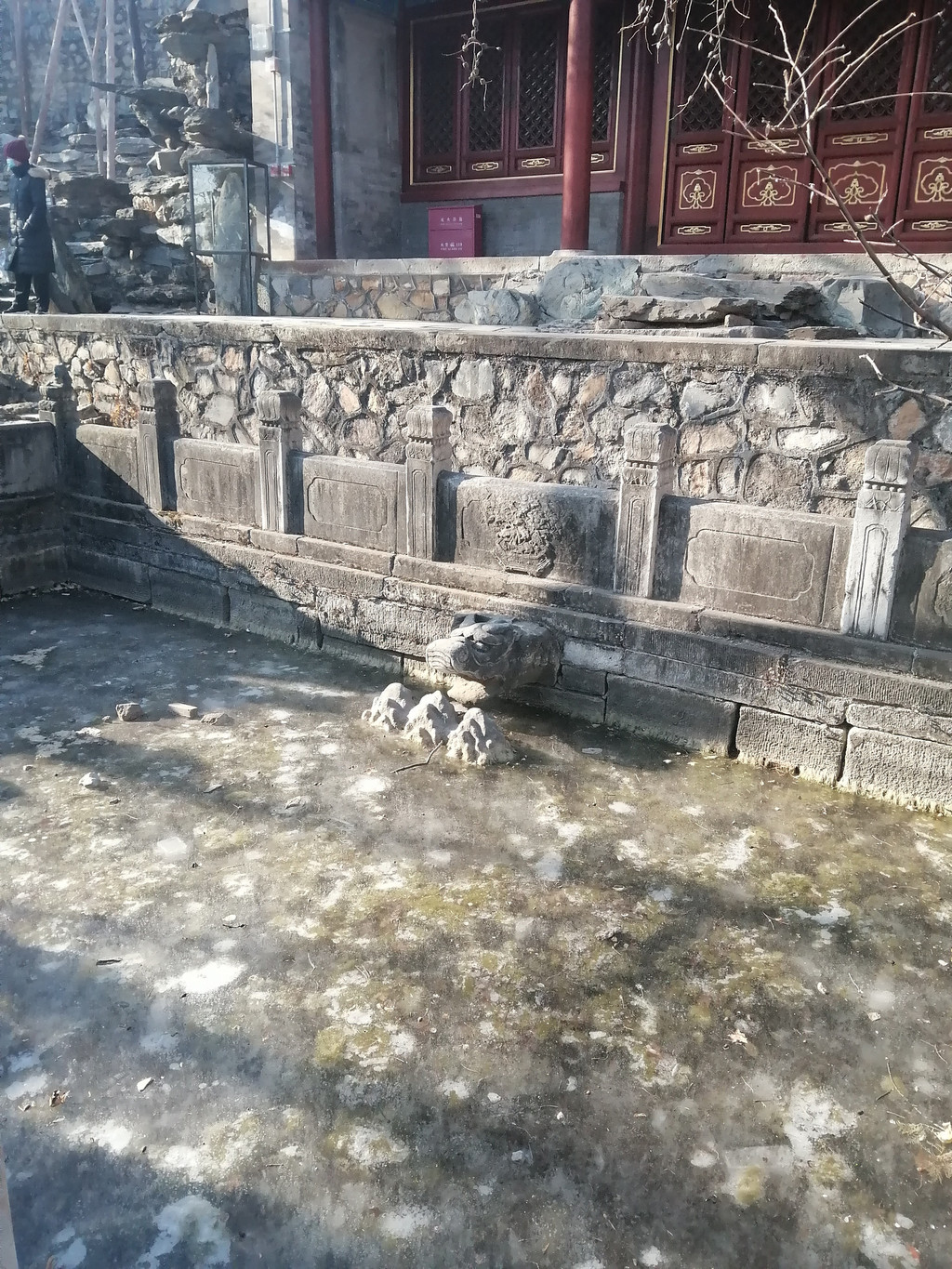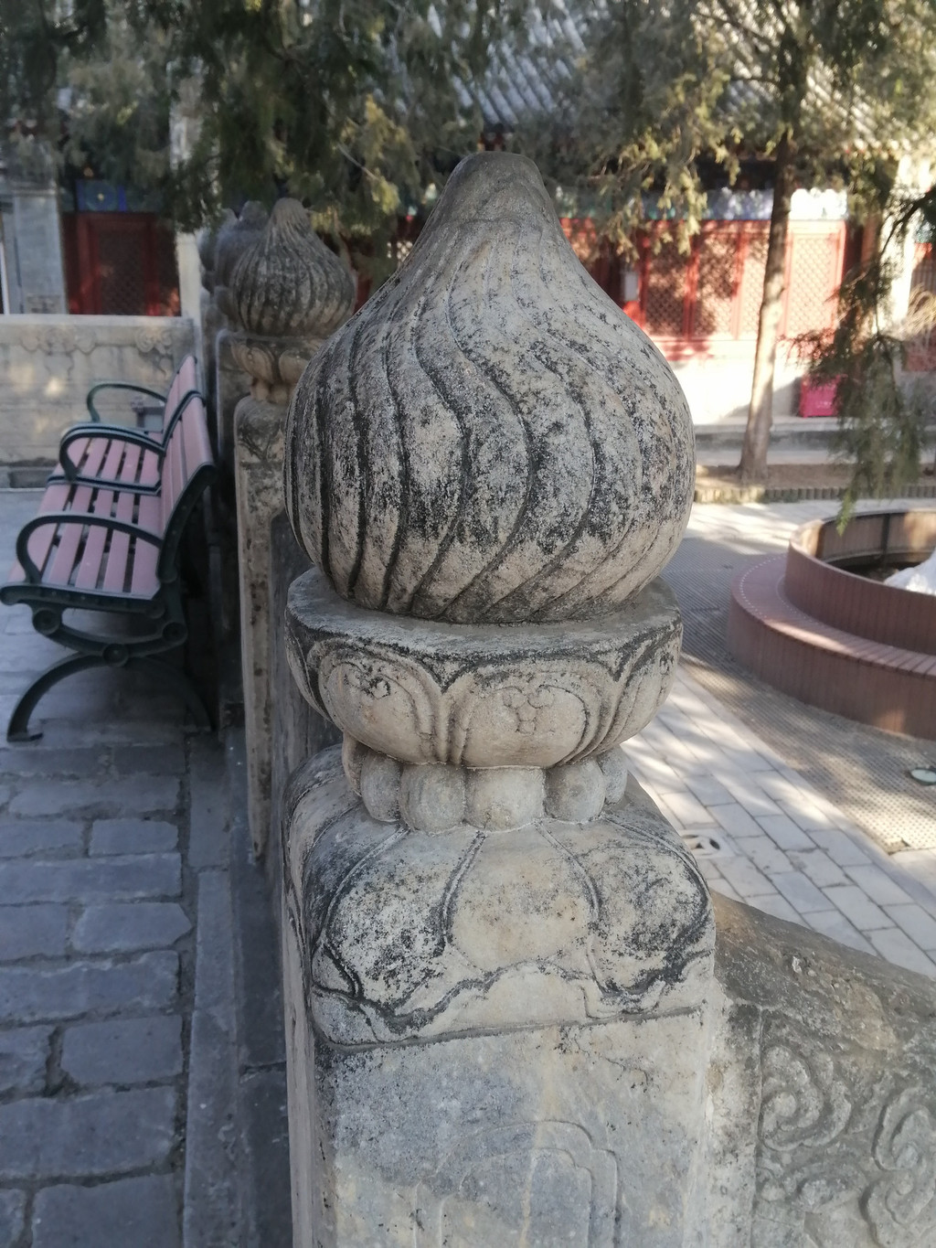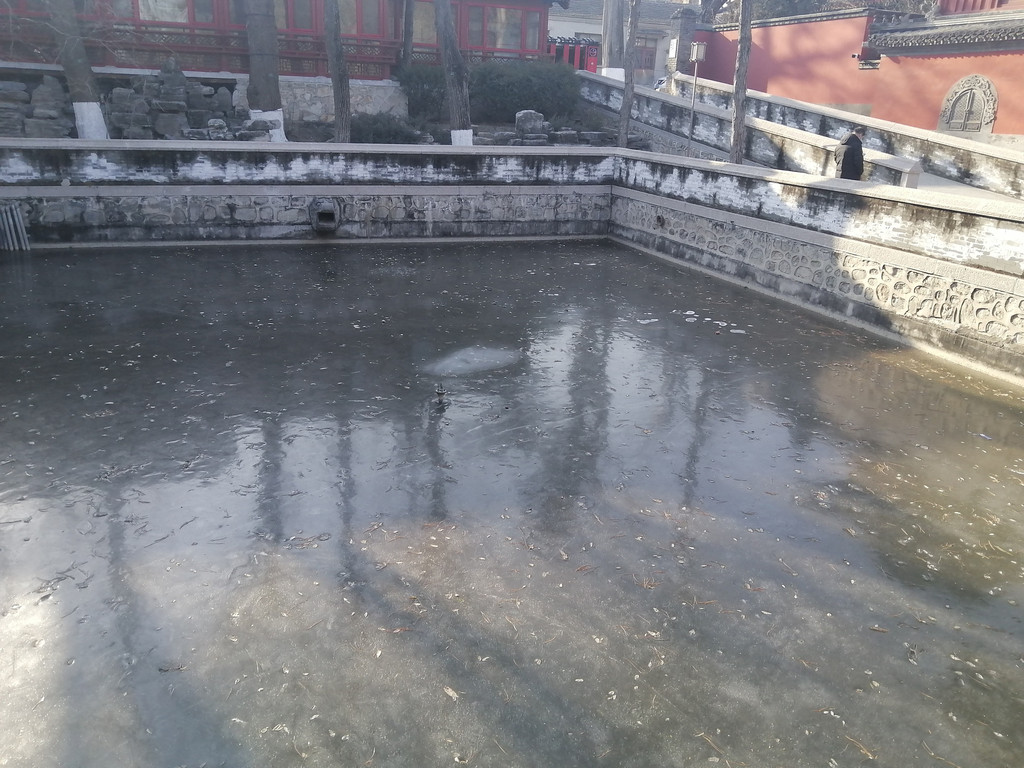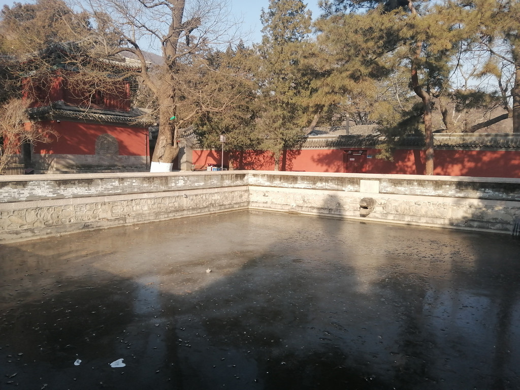 二绝“两色荷花”:功德池水由龙口喷出,碧波粼粼,池上架有一孔石桥,把池水分作两半。当年池中莲开两色,右白左红。乾隆赋诗云:“一水无分别,莲开两色奇。右白而左红,是谁与分移?"可惜这两色的莲花现已绝迹了。
