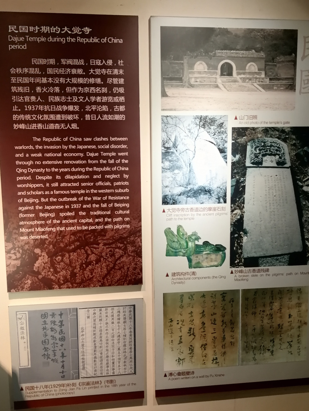 民国和抗战时期,军阀混战,日寇入侵,使大觉寺香火冷落。1937年,随着北平沦陷,大觉寺一度被日伪军抢占为军事据点,千年古刹遭到了惨重破坏。
