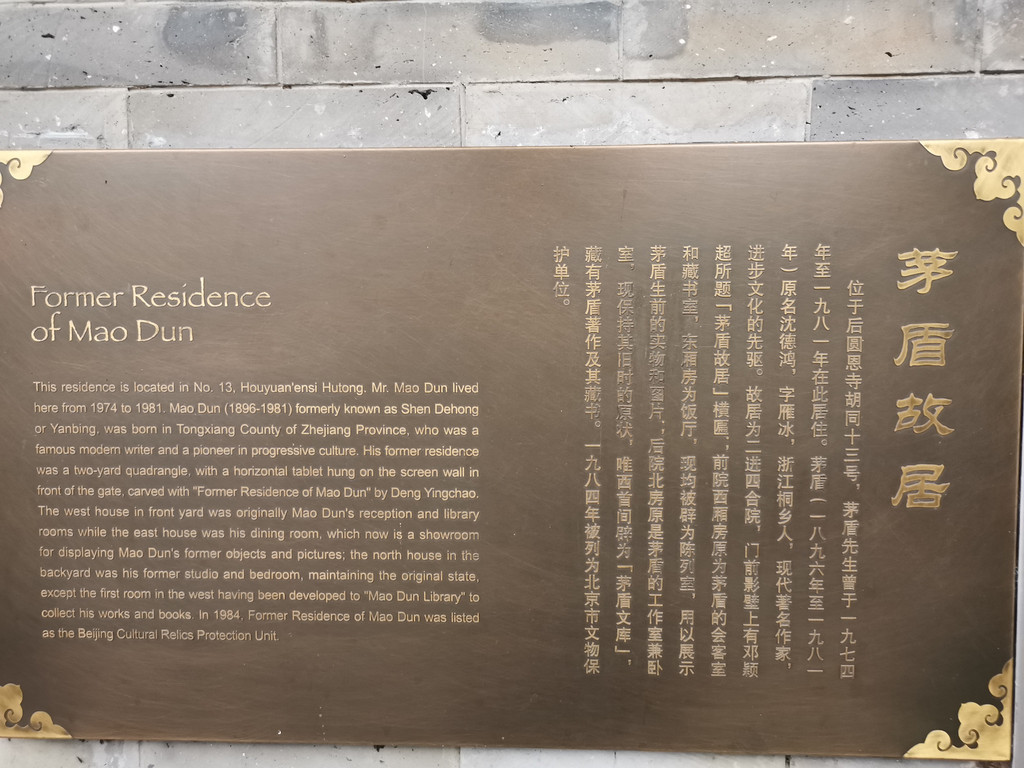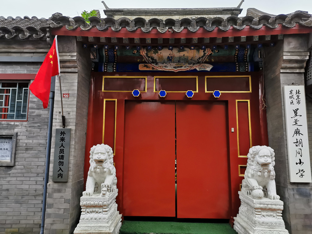 黑芝麻胡同小学,学校历史可上溯1644年建立之镶黄旗官学;有多个校址,散落于南锣鼓巷胡同区内,茅盾先生题写的校名。