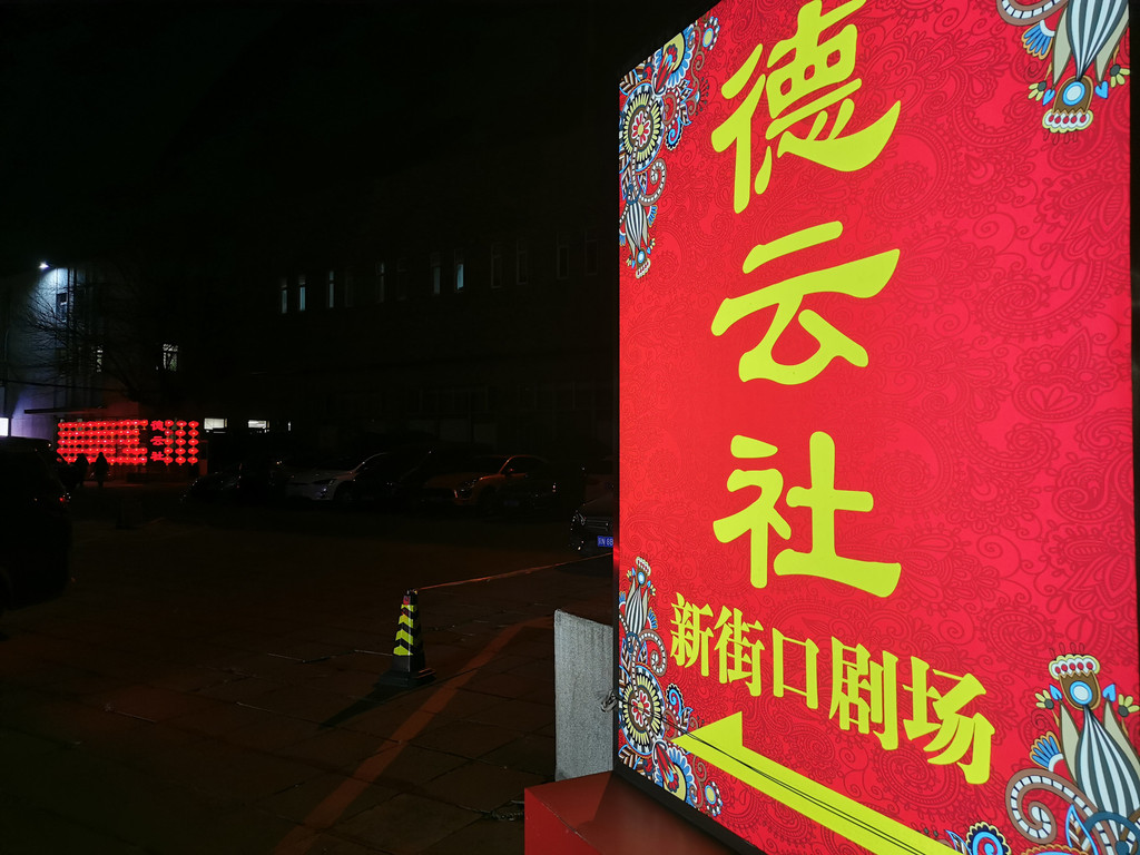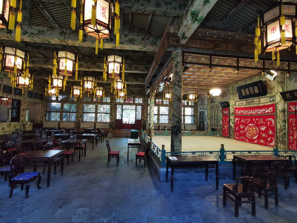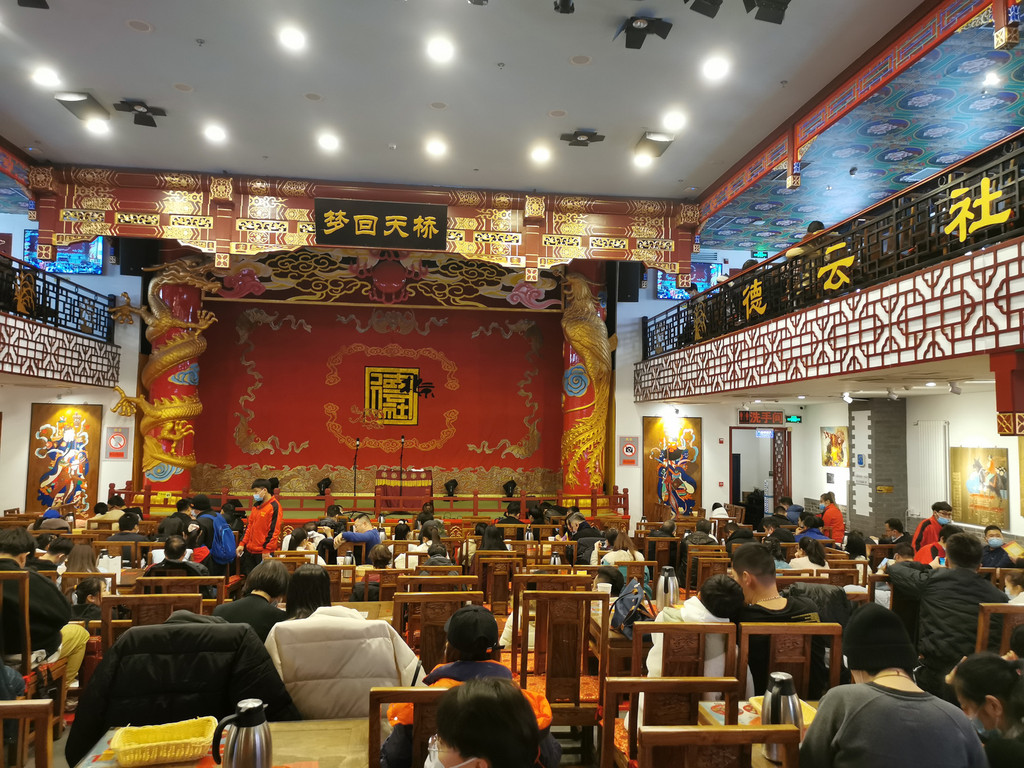 德云社好多家,三里屯SOHO的最小而新街口的最大—分有楼上楼下,里面摆设有点相似我老家以前的茶馆;只是老家茶馆方桌条凳,这边是方桌靠椅。