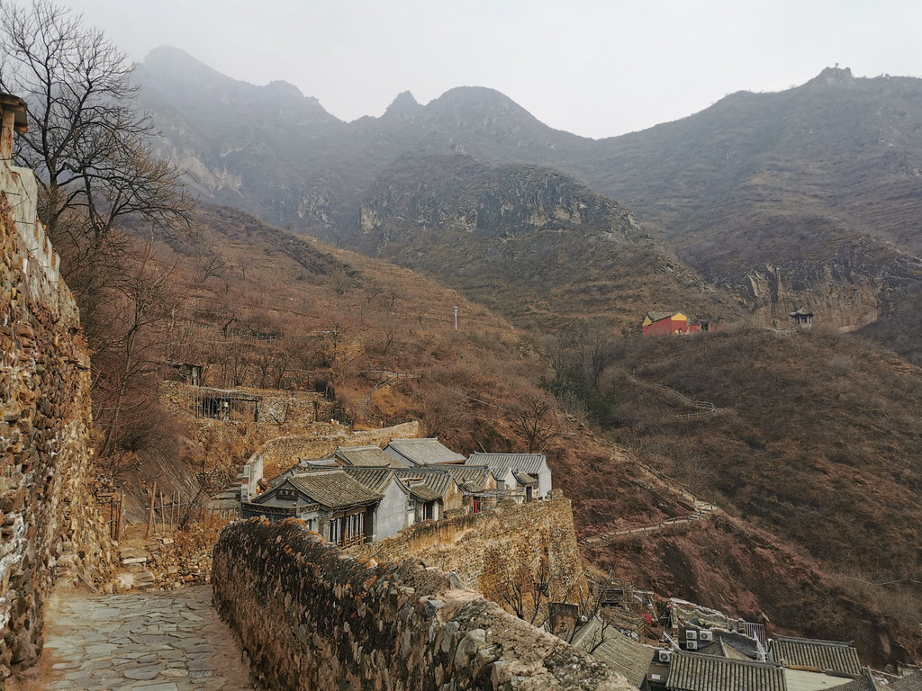 爨底下村, “爨”怎么写?—音Cuan,大概是灶下烧火的意思,那爨底下呢?爨底下村,北京城里行车过去两个多小时,往门头沟路上经过有琉璃渠,后面好长一段是山路,清晨云雾缭绕间翻山越岭、盘山公路越走越高。差不多有耳鸣时,我们开始翻越山梁;下山一路上还有其他几个村落。爨底下村民不多,好多年轻人到外面工作生活-现在中国的村庄或古村落大抵如此,就像三十多年前彼得.海斯勒笔下《寻路中国》从乡村到工厂…依山而建的明清古宅高低错落;村北坡有关帝庙,南坡上有供奉天仙圣母的娘娘庙。北国的寒冬清冷、肃杀,村口一线天那边山间崖壁上滴水悬冰,山坳里的积雪经日久而不化…