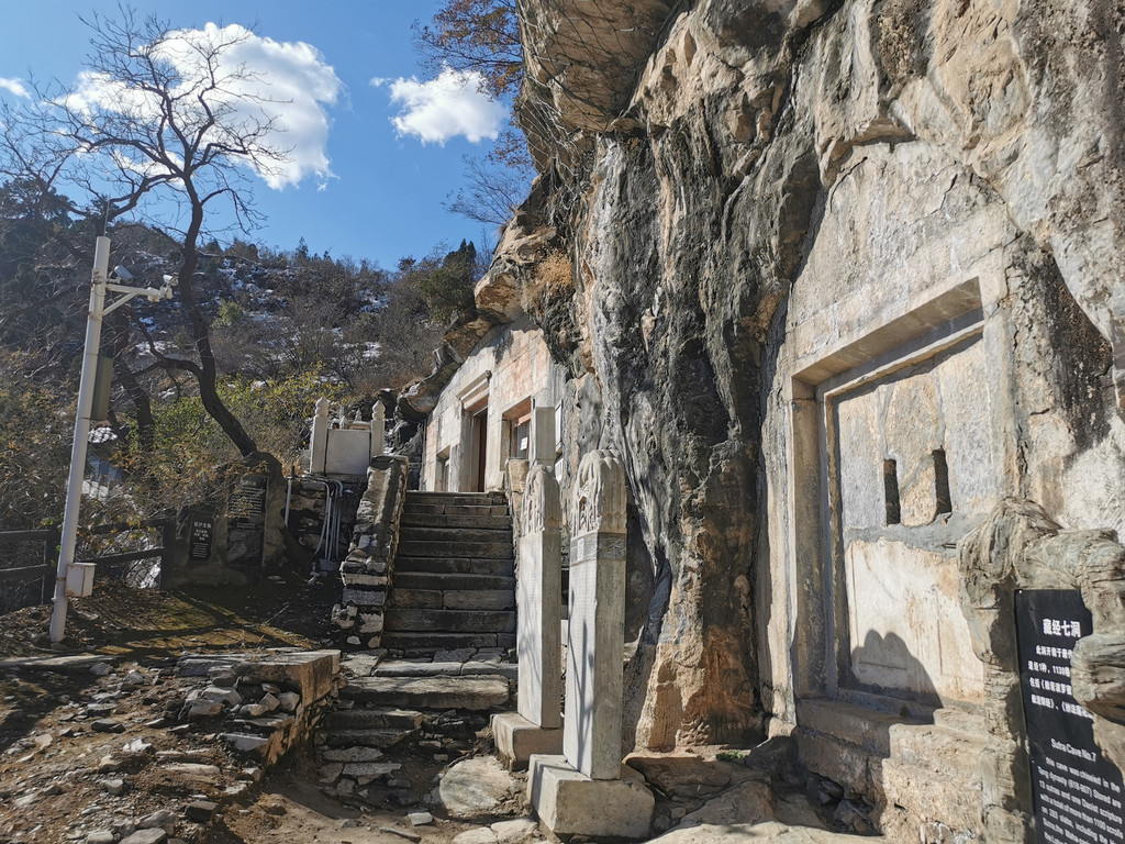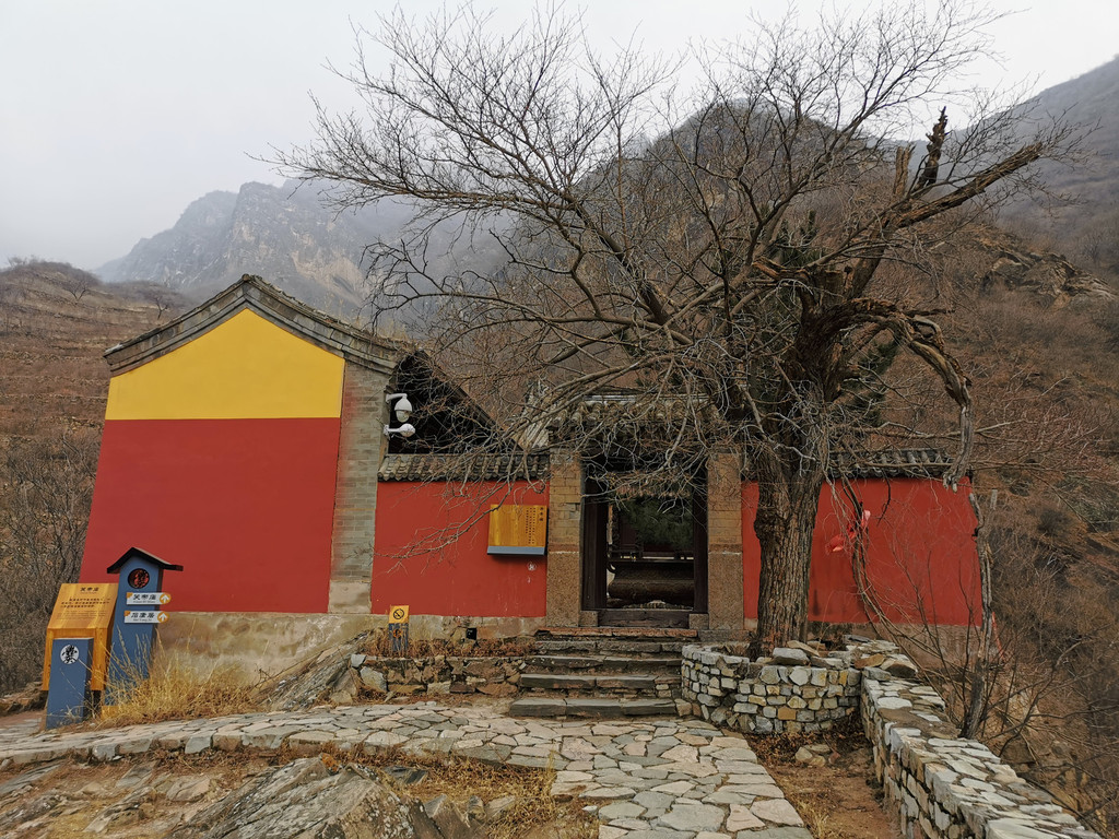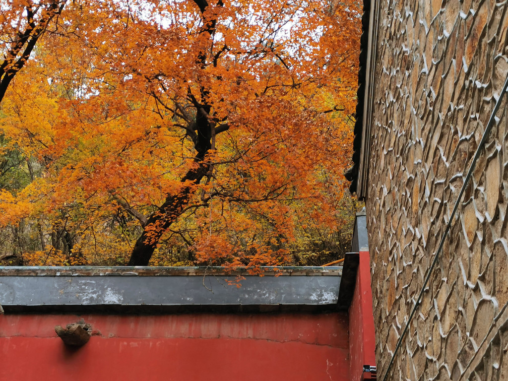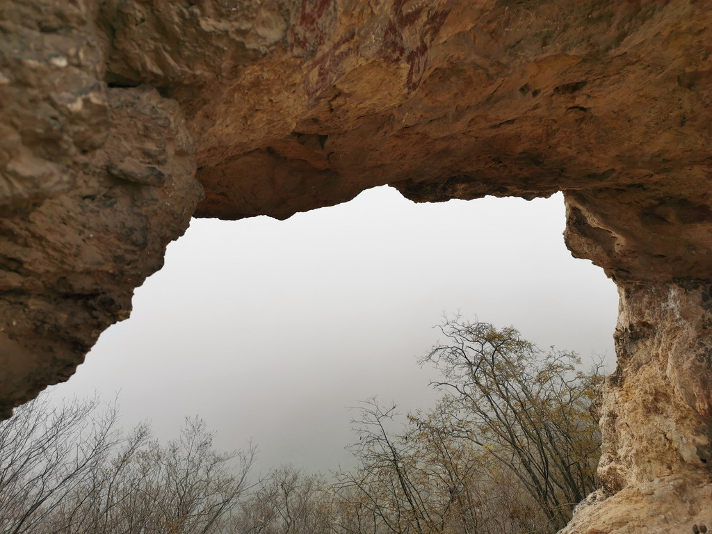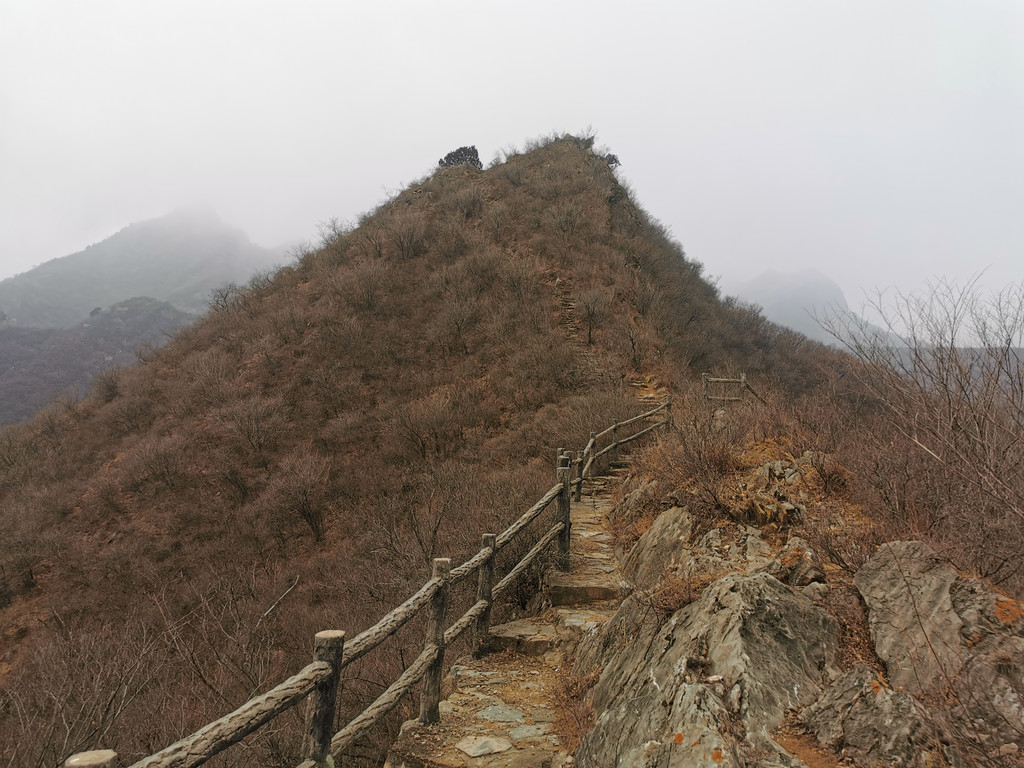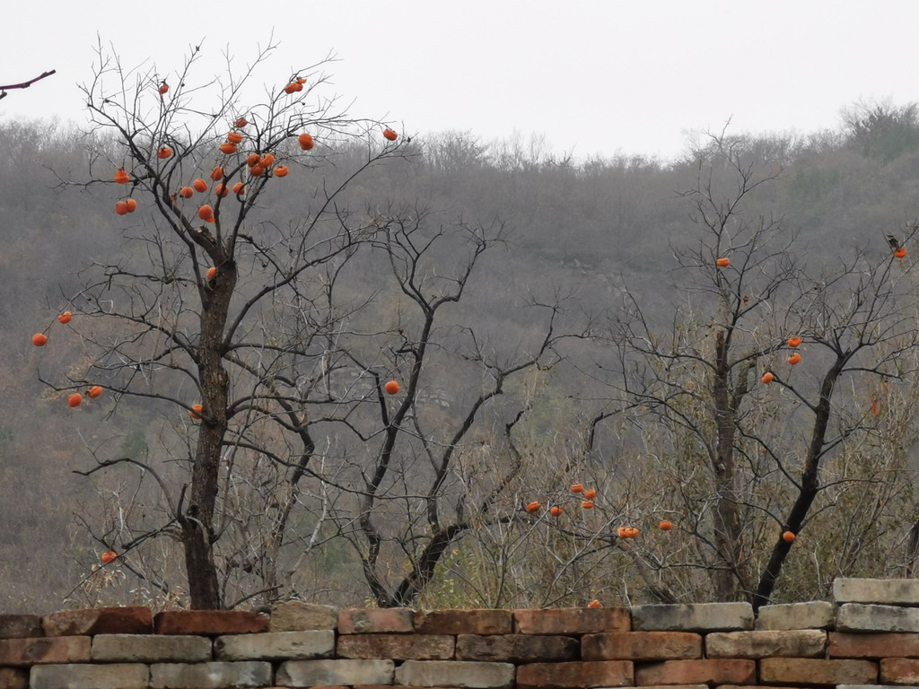 北京有两个天门山景区,分别位于门头沟和密云。门头沟天门山国家森林公园经过南辛房村—也是典型的北方小山村,路边屋前或就是上百年的大槐树,有大爷屋边打理着杂活,房屋周围总有堆着煤饼或就地上晒晾着一方方的煤球。初冬,树梢上挂着火红的柿子,屋檐下或半截砖墙上晾着长串金黄的玉米棒子,村子里偶尔传来一两声犬吠…清晨大雾--整个山里雾气弥漫,村口进山时一位老奶奶走在我前面,我问候“这么早上山去干活啊?”她笑说“哎,这么大年纪活做不动了,早上走走”--虽然看着背也有些佝偻了,可直到快山脚总是忽快忽慢走在我前后。上山路上间或传来山谷间悠远清澈的鸟鸣声,经过石洞窟后就是石长城—山顶不知多少亿万年山峦高低起伏自然形成的长城状山梁,宏丽壮观非常,石梁上云雾飘忽宛若仙境…