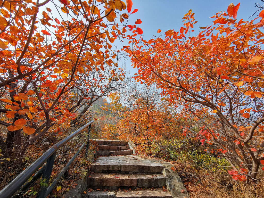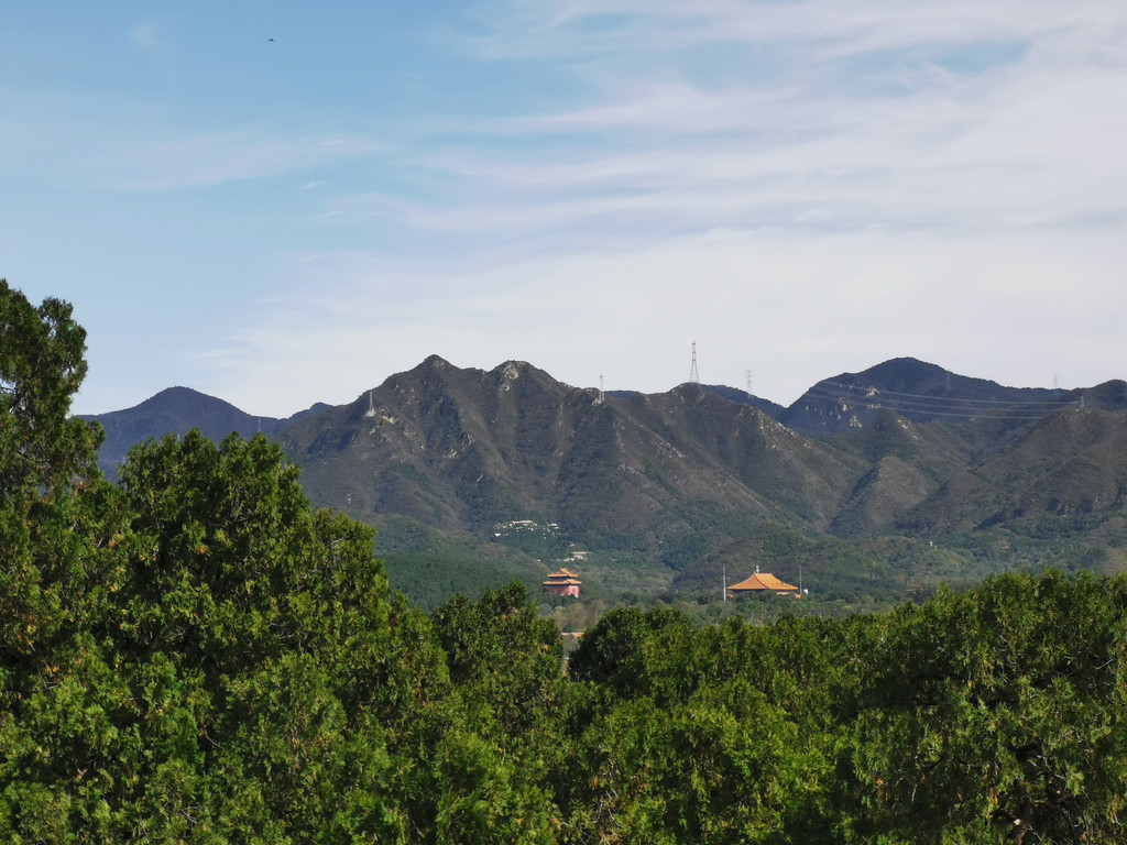 大觉寺山门出来左手边不远有山道可上西山鹫峰;鹫峰国家森林公园林木植被覆盖率极高,曾经是北京林业大学教学实验林场。漫步千年古道,秋季的山林红叶渲染,登临鹫峰环顾四周,峰峦回转、天地空阔;一直再往西登上望京塔,西向妙高峰等群峰雄峙“乱峰丛叠,若不可上…”,扶栏往东俯瞰而“苍松如茵出其下…”再往远处眺望是京西城区、西山香山八大处。