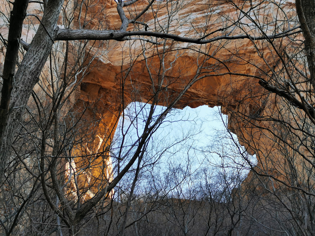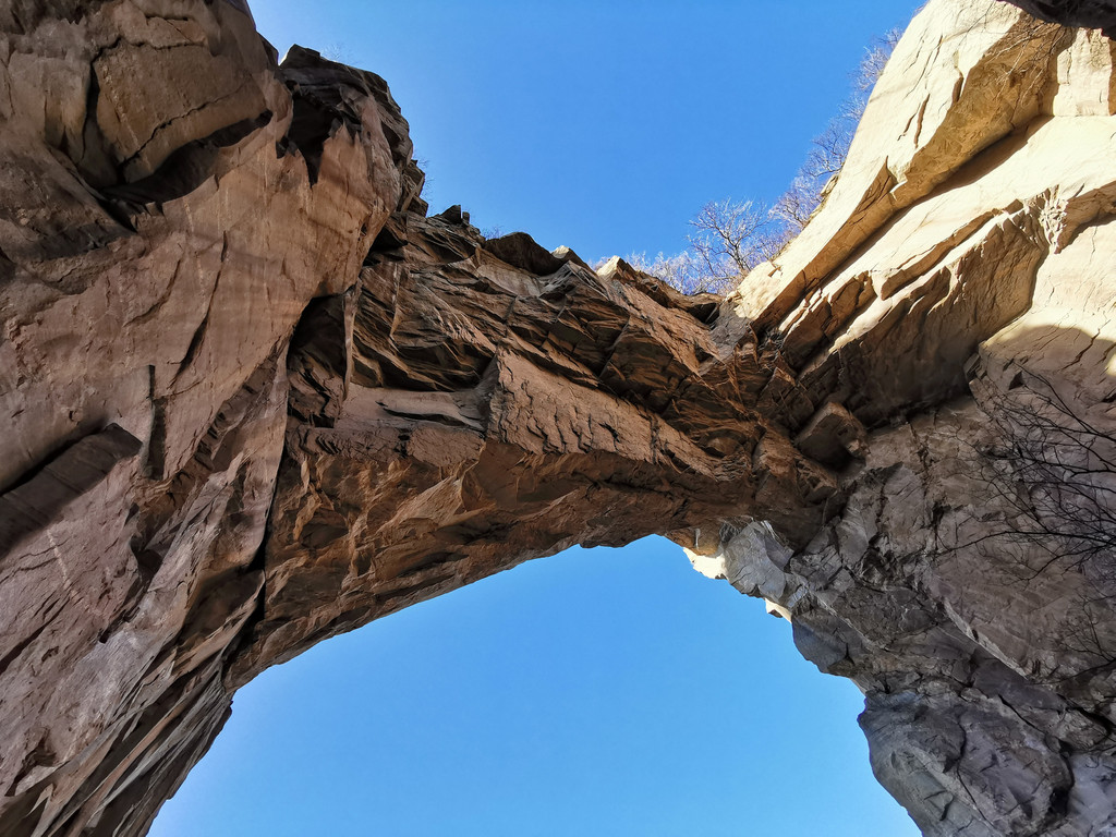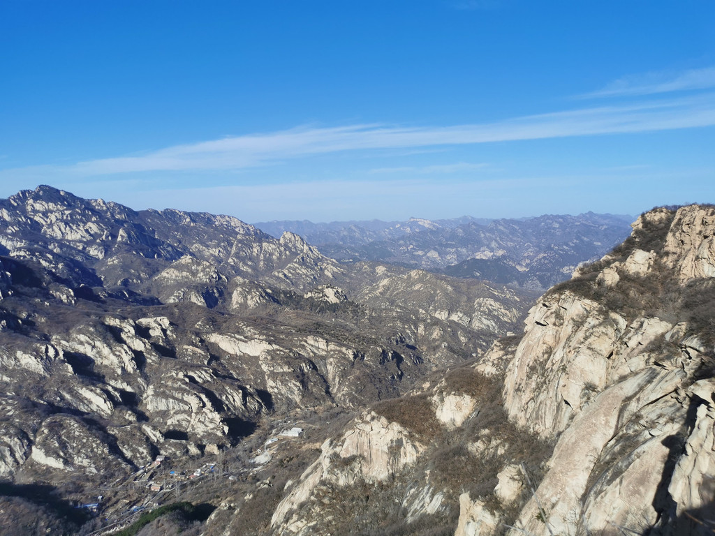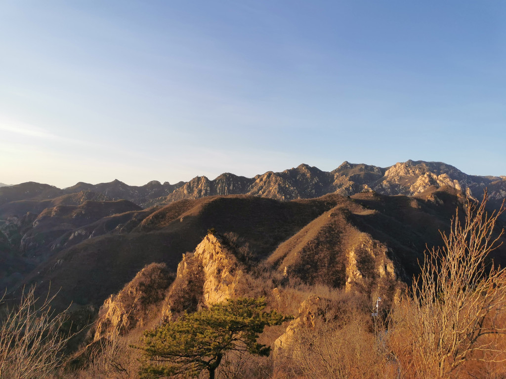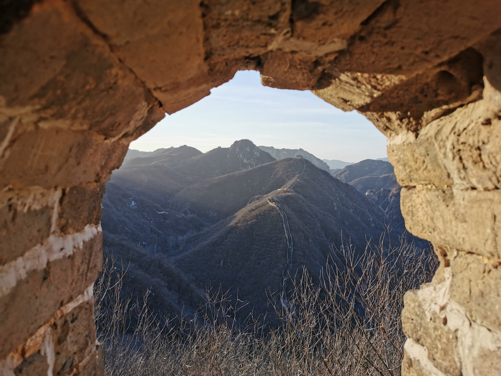 密云天门山归属于燕山山脉,山势浑厚雄伟,立在山谷间抬首仰望半空中巨大的花岗岩山体--扑面而来昆仑巍峨、气壮山河的感觉。山道两旁高低好多板栗园,其中不少是树龄百年以上的古树;山涧里潺潺的溪水清澈见底,溪流断断续续已经开始结冰;半山腰有一株“红梨王”已经超过三百岁。登山徒步的感觉大约和村上先生说的跑步的感觉有些相仿,什么也不用想,只要不断重复迈开步子…而登山穿行在山林间,更多安静、且前路有更多不确定的风景…登临天门山之巅,山顶豁然开朗--形成于一亿二仟万年前的天门洞,脚下是波澜不惊、浩瀚万顷的密云水库和库区山峦上蜿蜒不尽的长城…静静地凝望着--冬天午后清冷的阳光洒在棱角分明、硕大的巨石天门框上幻化出温煦的橙色,那一刻我分明觉得自我是多么卑微而至于微不足道,而现实我们人类是不是把我们自己自视太高而且已经走得太远太远…