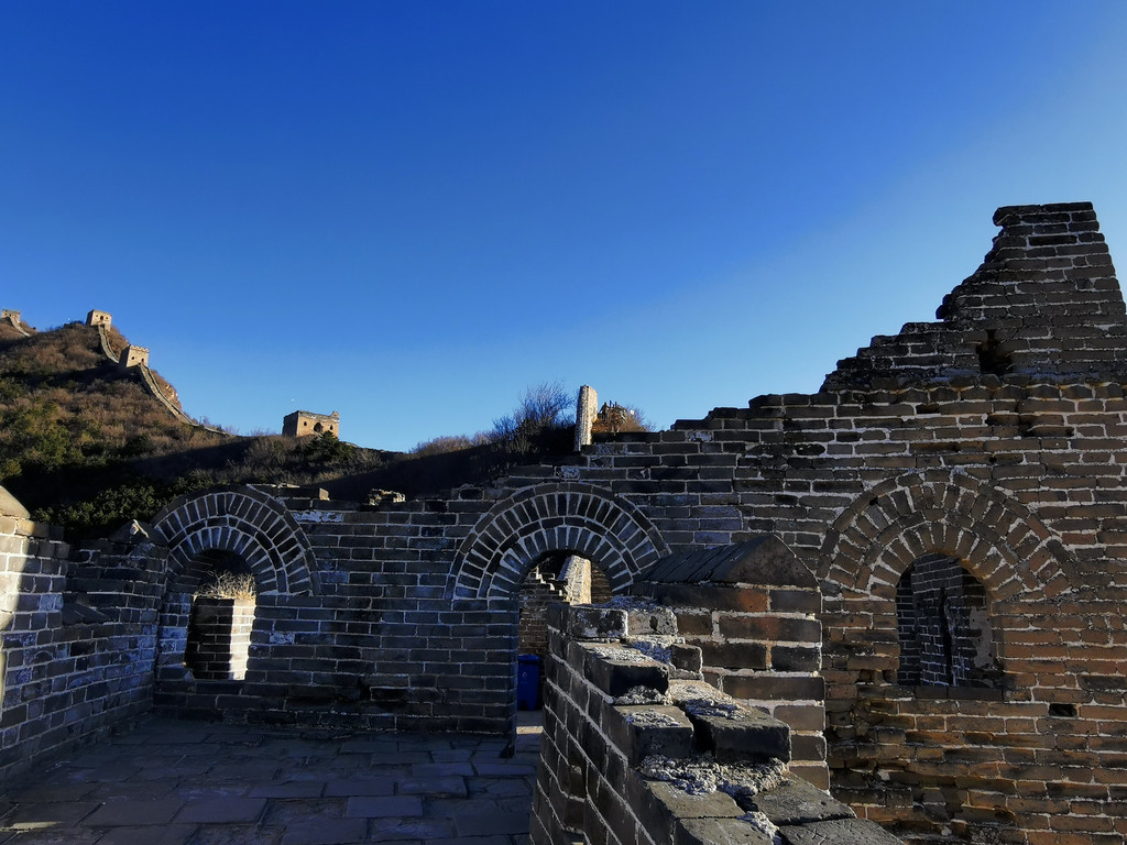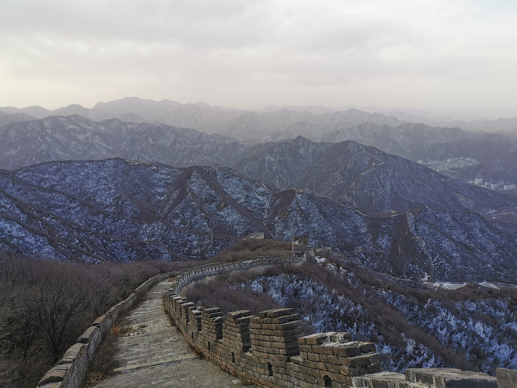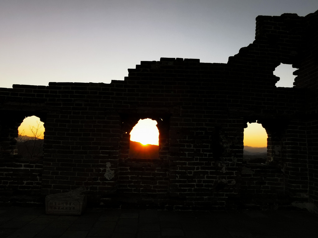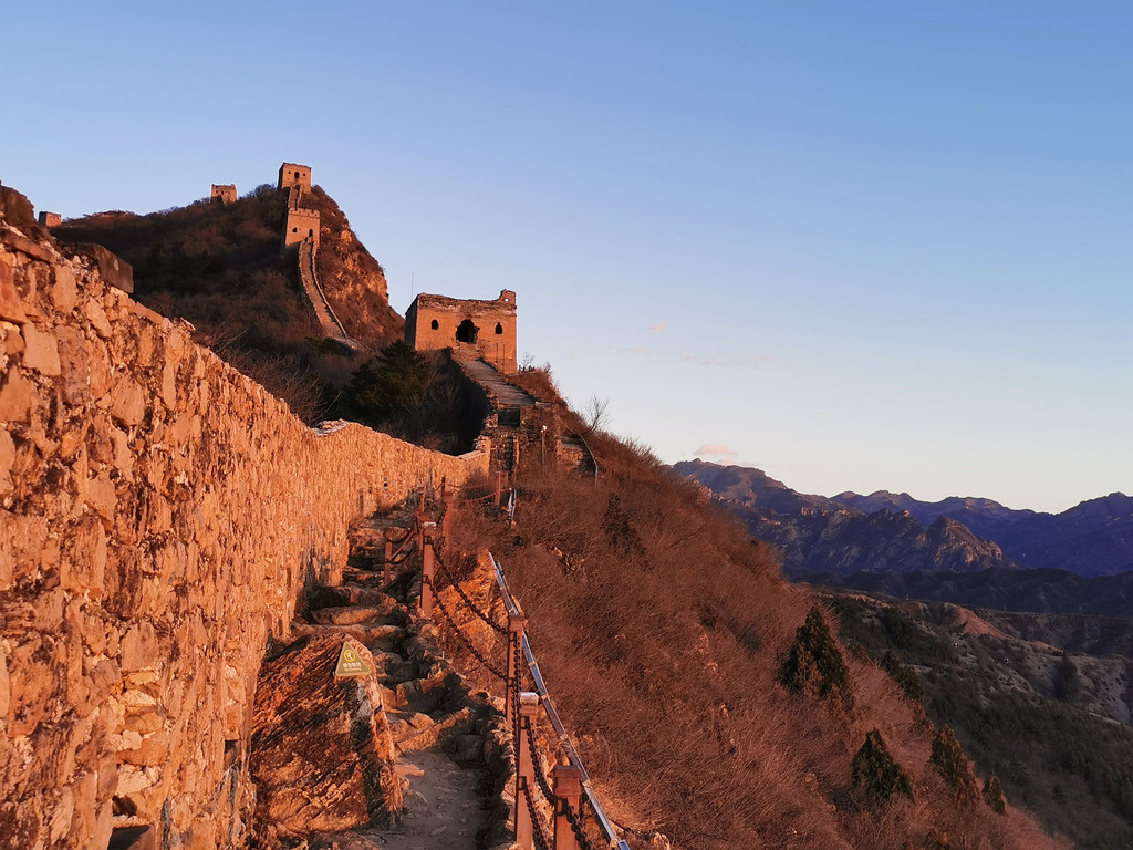 司马台长城位于密云区古北口镇,始建于明洪武初年,后万历年间时任蓟镇总兵戚继光又给予重新整修完善。司马台长城下方紧邻古北水镇,东直门外公交站-古北水镇有专线往返。古北水镇往里走到底就是长城检票口,差不多下午两点半开始上山,风疾天寒、几乎脚不停歇,约一个小时到10楼烽火台最高处,后面没有开放而不能到望京楼。下山时,有工作人员说今天到十楼只有三位游客;和一位老大爷闲聊了一会,手指着远方更远的山坳里:嗯,我们家就在那边,古北口镇另外的一个镇,我也不知道我们以前怎么到了这山里…天边,太阳已经收敛了之前耀眼清冷的光芒,慢慢往远山间沉下去,而那冬日的余晖将天空、长城、起伏的峰峦都染成了橘橙色…终于这一抹橘橙色随着这余晖也一起消失了…此时山下古北水镇、远处山坳零落人家的灯火,还有塞北夜空中的点点繁星开始明亮闪烁起来…