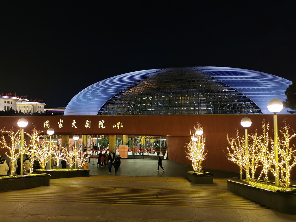 国家大剧院在天安门广场人民大会堂西侧,法国建筑设计师保罗.安德鲁主持设计,倾覆在水面上半椭圆形的外观看着超现实的感觉,尤其是座落在六百年紫禁城的周边,会感受到明显的视觉冲击和中西方文化的碰撞,或许至少部分因此当初该设计方案曾引发广泛争议,最后是组织专家组论证后最终提交了中央政治局批准。天安门西地铁出站地下通道可以直通大剧院售票处;剧院内部设有歌剧厅、音乐厅、戏剧场、小剧场等。