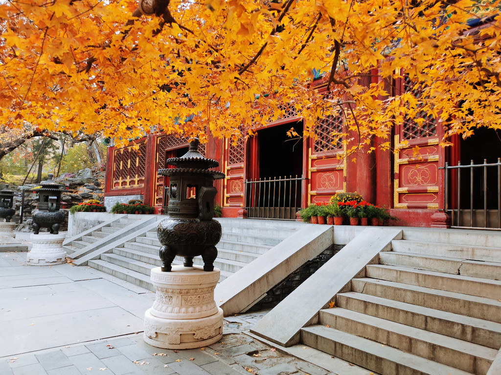 大觉寺背靠北京西山鹫峰国家森林公园,地铁16号线终点站北安河下-打车过去没几分钟。始建于辽代,山门上悬“敕建大觉禅寺”;虽然年代久远,历经毁废重建重修,寺院内仍遗留众多文物古迹包括辽代古碑、近千年的银杏、三百年玉兰树、“无去来处”“动静等观”等御笔匾额、智化寺迁过来的三世佛等等,以及乾隆年间敕建的迦陵舍利塔。康熙年间高僧迦陵性音在雍亲王登基大宝之前与其过从甚密,也因为雍亲王推荐而住持大觉寺;然而,雍正登基不久迦陵即离京南下去了江西庐山。