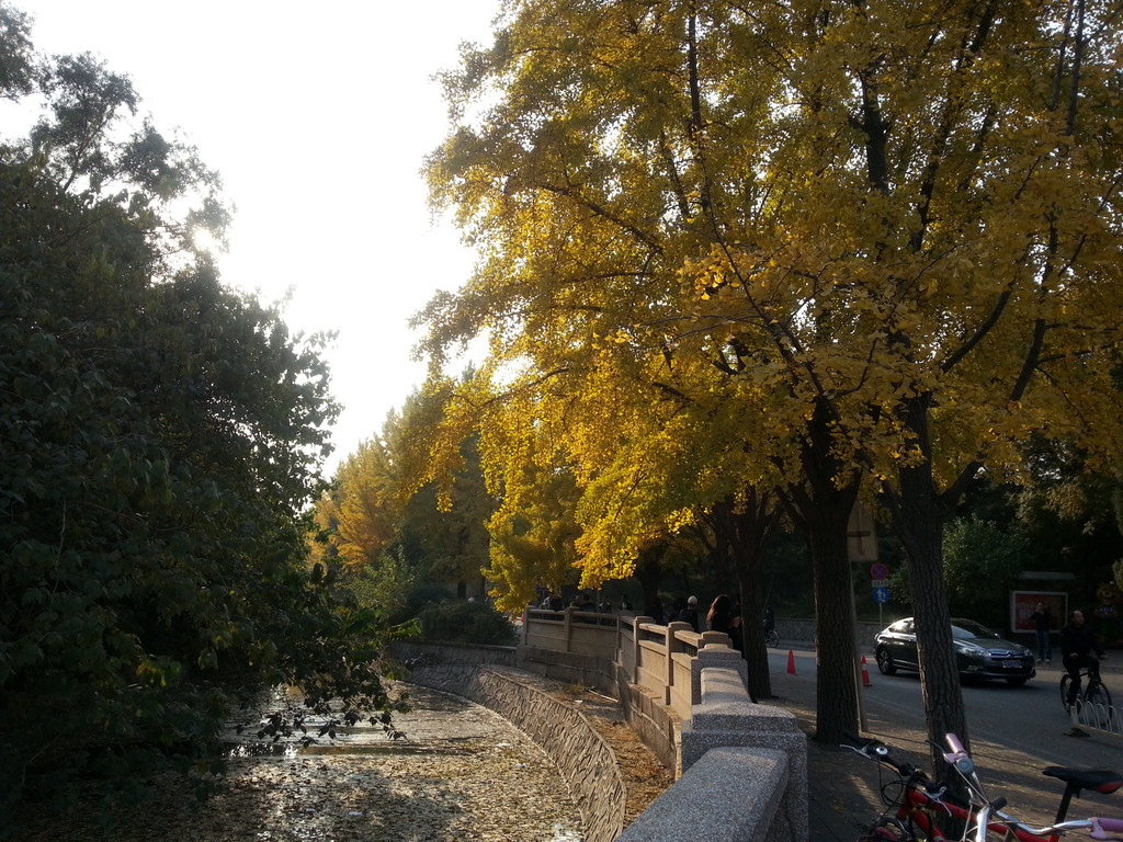 北河沿街往北到底是南锣鼓巷,纵横交错,老北京保存完好、最早的胡同区之一。胡同最早是起于元朝,大概意思有说可能是蒙古语水井的音译然后引申出有人聚居的市井地方或者就是胡人聚居的地方等等,现在就相当于市井街巷;胡同里的典型居住单元是四合院—进门院落而东南西北四进房。南锣鼓巷历史上居住过好多王爷贝勒、达官名流、富贵显耀,因而遗迹众多;说近的有雨儿胡同齐白石旧居,后圆恩寺胡同茅盾故居、蒋介石行辕,帽儿胡同冯国璋故居等等。南锣鼓巷与东棉花胡同口是中央戏剧学院,曾经是北洋政府国务总理靳云鹏的旧宅。